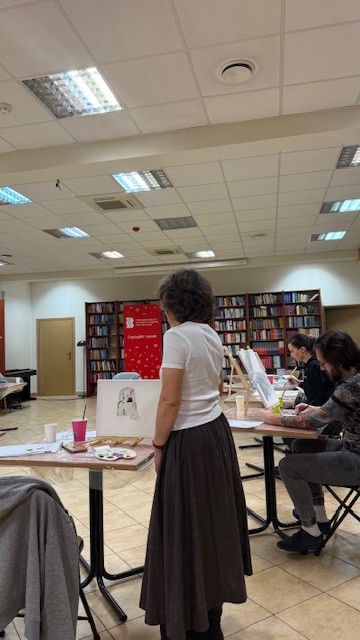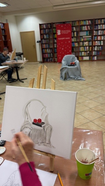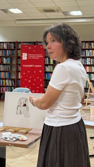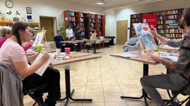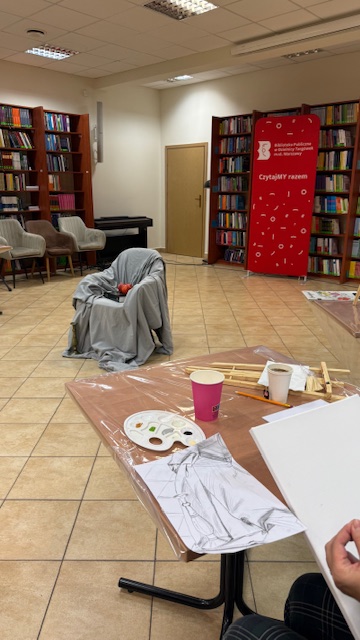 W Wypożyczalni nr 130 o profilu pedagogicznym 24.11.2025 r. odbyły się bezpłatne warsztaty malarskie, poprowadzone przez Katarzynę Wesołowską-Waszkowską – artystkę, arteterapeutkę, która zajmuje się m.in. malarstwem, rysunkiem, asamblażami.