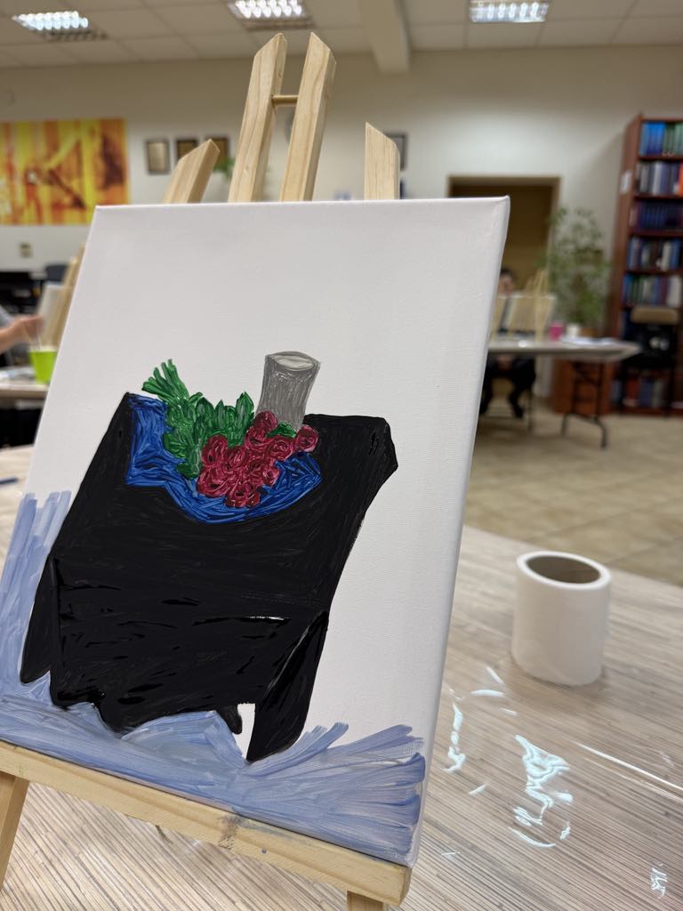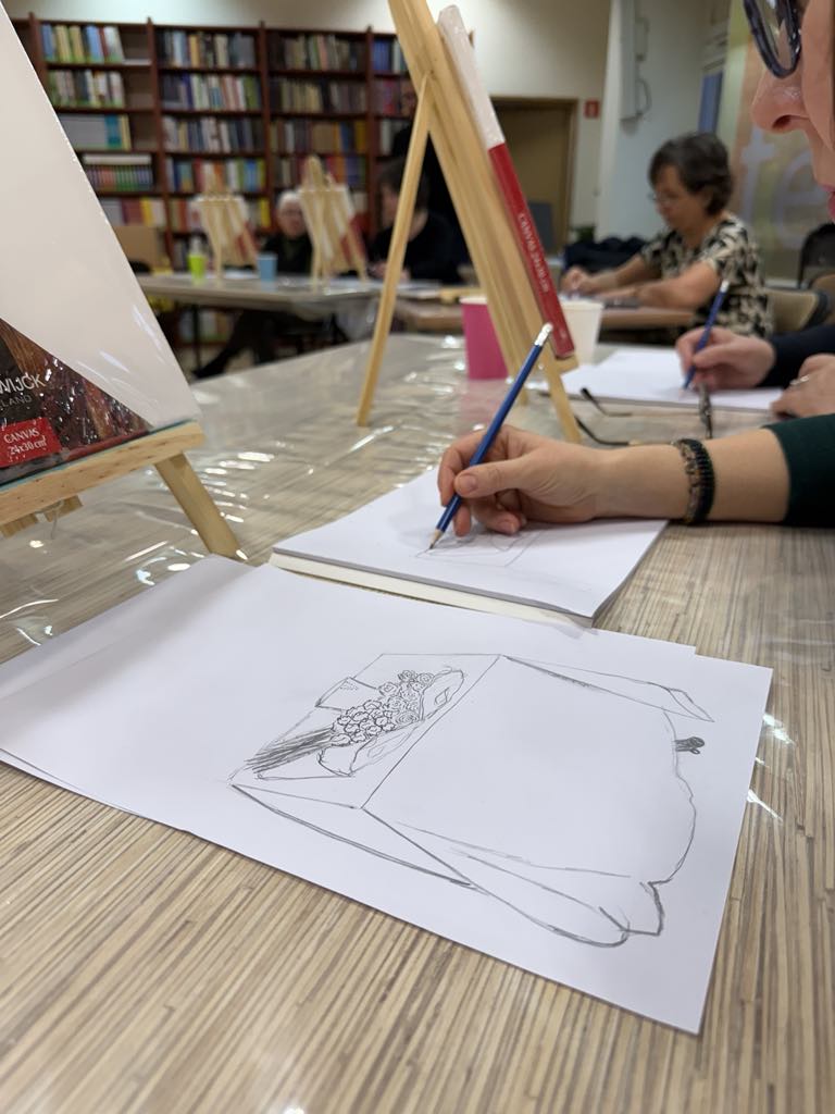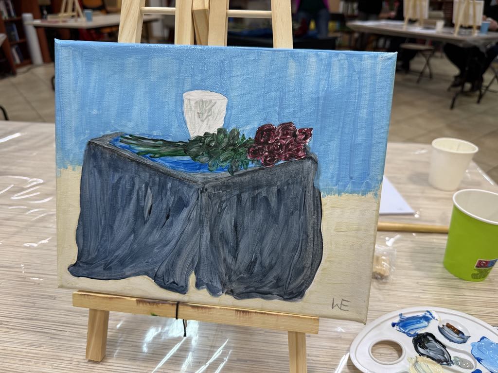 Uczestnicy malowali martwą naturę. Powstały wspaniałe dzieła, które możecie obejrzeć w poniższej galerii. Atmosfera spotkania sprzyjała twórczej ekspresji – rozmowy o sztuce przeplatały się z chwilami pełnej skupienia pracy nad detalami kompozycji.