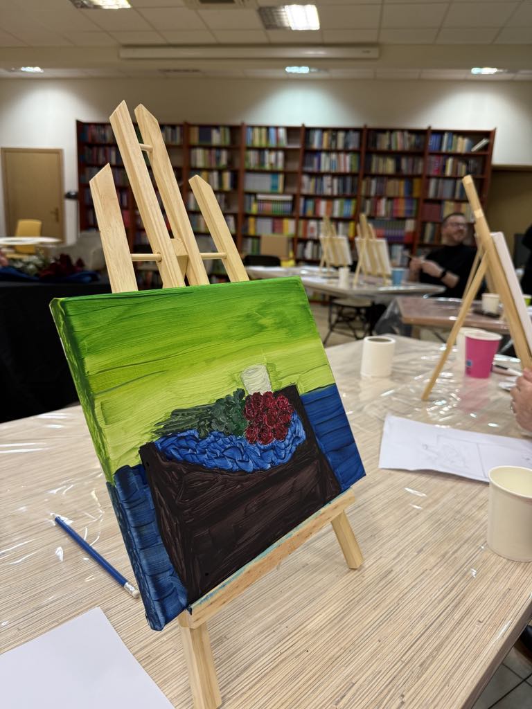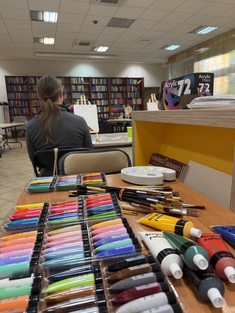 21 lutego 2025 r. w Wypożyczalni nr 130 o profilu pedagogicznym (ul. św. Wincentego 85) odbyły się kolejne warsztaty malarskie, prowadzone przez Katarzynę Wesołowską-Waszkowską.