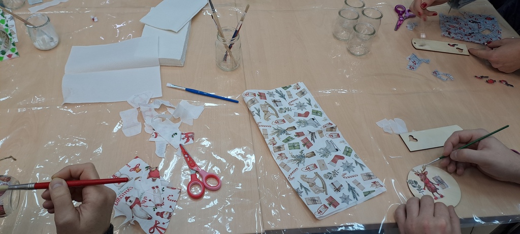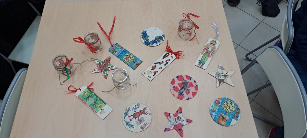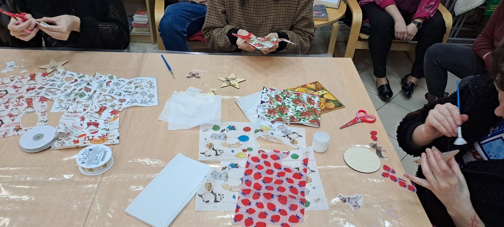 19 grudnia 2023 r. Wypożyczalnia dla Dorosłych i Młodzieży nr 72 zaprosiła zaprzyjaźnioną grupę dorosłych użytkowników na przedświąteczne warsztaty rękodzieła. Porozmawialiśmy o zbliżających się świętach i kultywowanych w naszych domach tradycjach bożonarodzeniowych. A ponieważ święta to czas spotkań rodzinnych i PREZENTÓW, zabraliśmy się do wspólnej pracy. Efekty prezentujemy na zdjęciach.