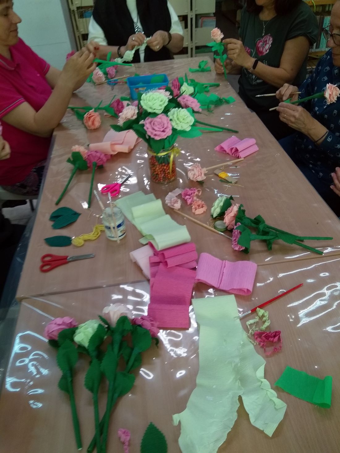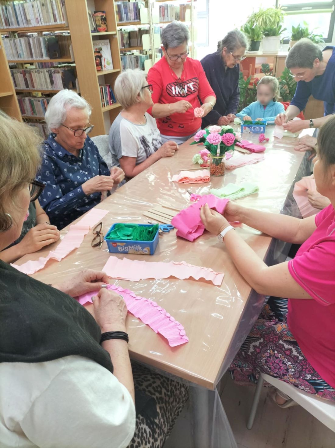 28 kwietnia z okazji 5. Warszawskiego Tygodnia Międzypokoleniowego w Wypożyczalni dla Dorosłych i Młodzieży nr 60 odbyły się warsztaty rękodzieła „Wiosenne bukiety z bibuły”. Zebranych gości mimo różnicy wieku połączyła pasja tworzenia własnoręcznych dekoracji. Wykonane z krepiny kwiaty wprowadziły nas w radosny, wiosenny nastrój.