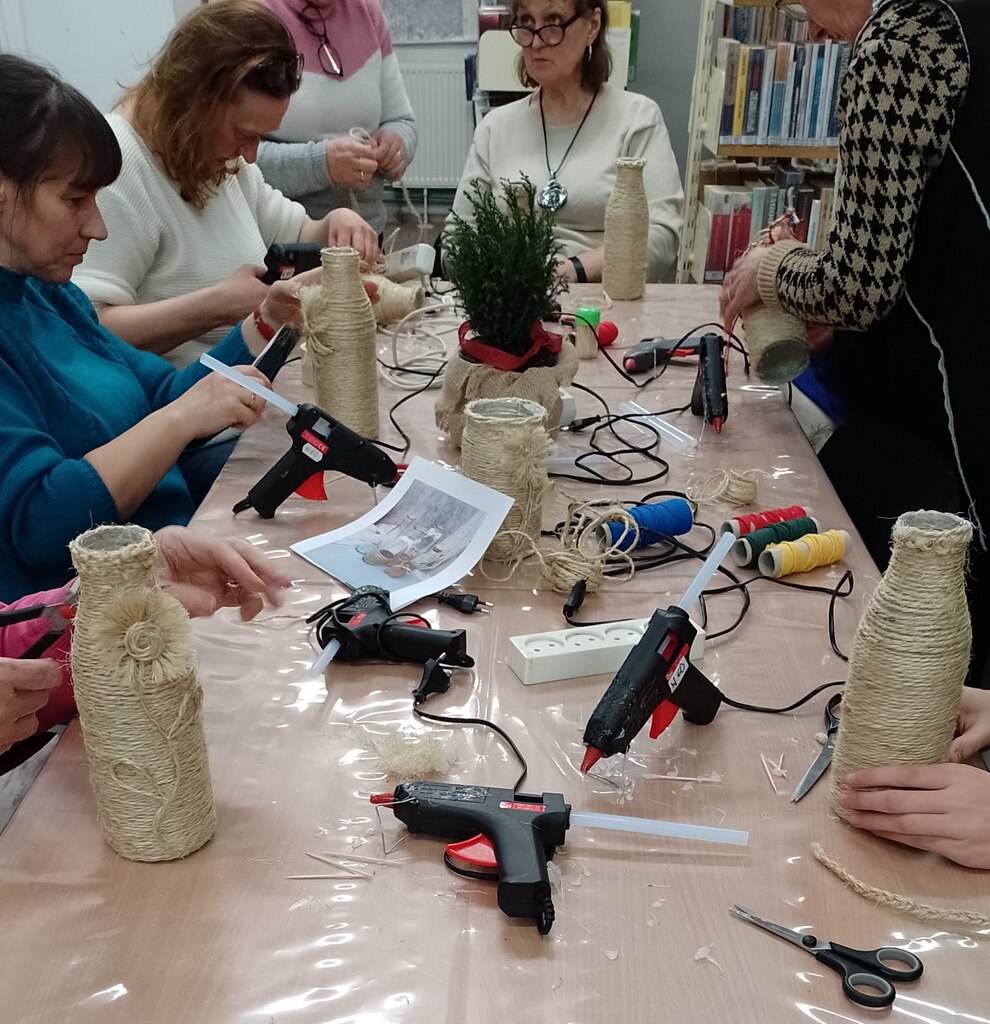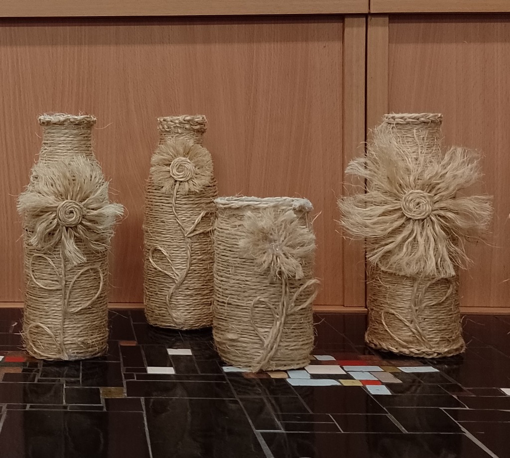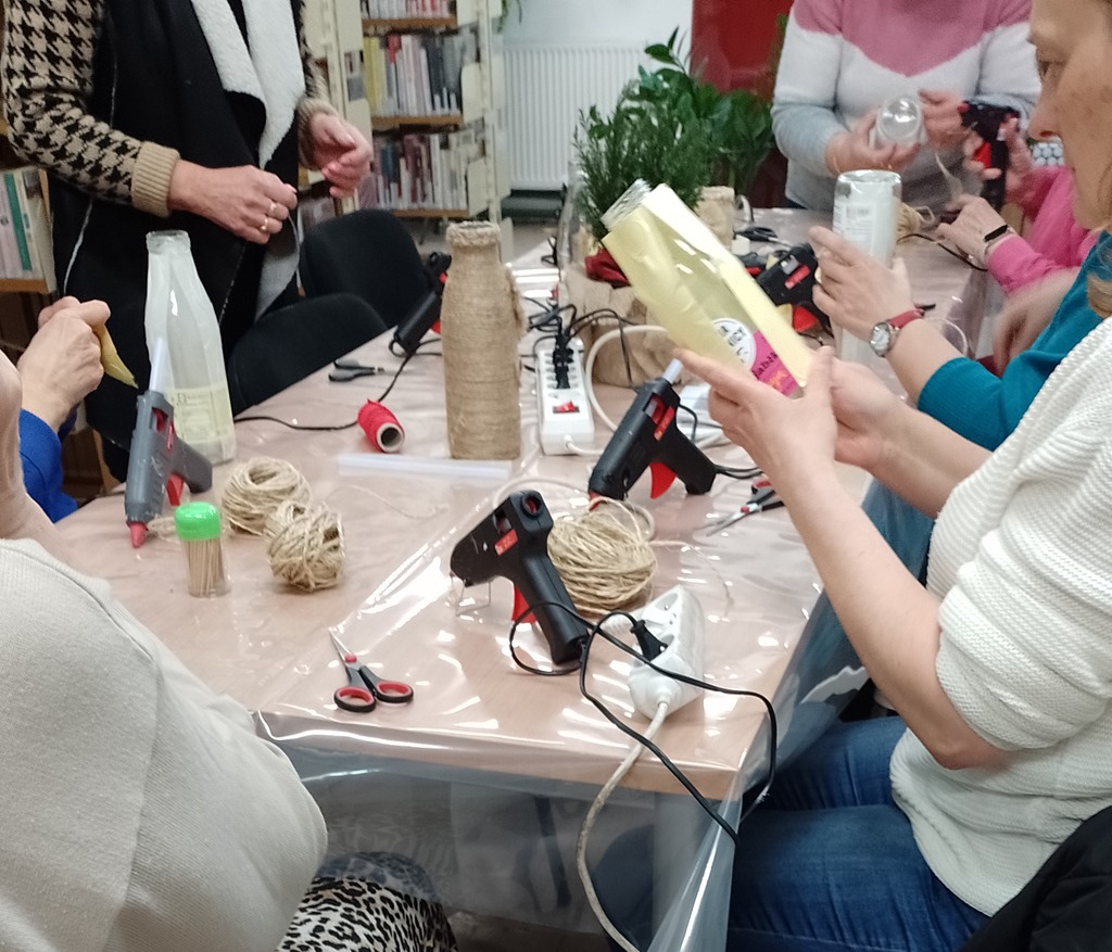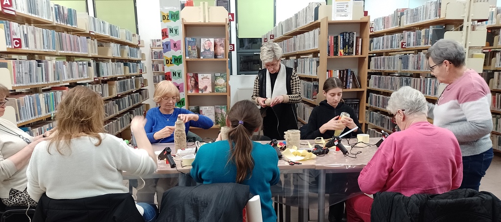 W lutym w Wypożyczalni dla Dorosłych i Młodzieży nr 60 odbyły się kolejne w tym roku warsztaty rękodzieła z cyklu „Z pasją i inspiracją”. Zajęcia miały charakter ekologiczny i praktyczny. Ze szklanych butelek po sokach oraz sznurka jutowego wykonaliśmy oryginalne wazony, zdobione według własnych wizji artystycznych. Praca sprawiła nam wiele przyjemności, a inwencja uczestników przyniosła zaskakujące efekty. Pomysł na własnoręcznie wykonany wazon spotkał się z dużym zainteresowaniem uczestników. Zainspirował do aranżacji kolejnych szklanych wazonów i pojemników o różnorodnych kształtach.