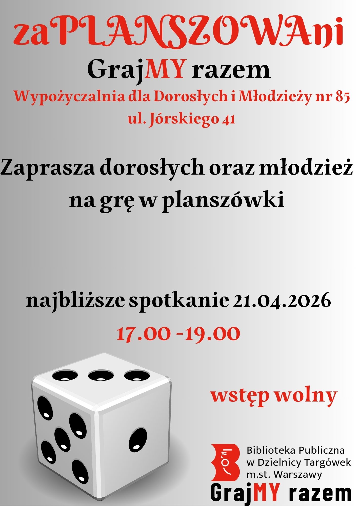 Wydarzenie organizowane w ramach kampanii „GrajMY razem z Biblioteką Publiczną w Dzielnicy Targówek!”.