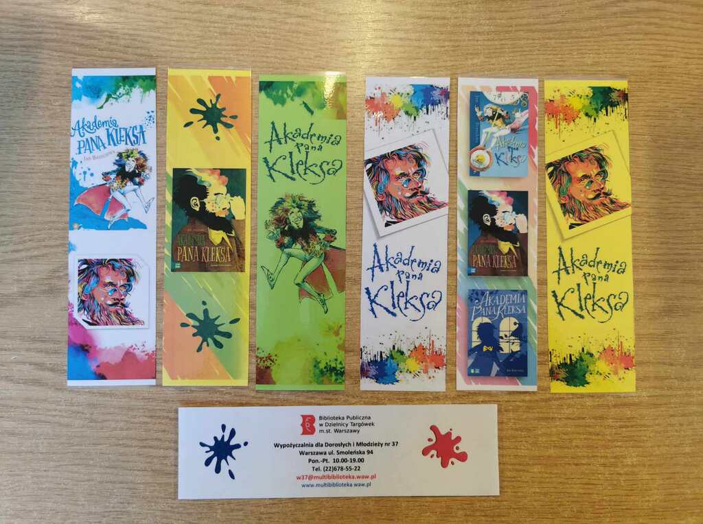 Częstujemy czytelników Kleksowymi zakładkami! Czekają na Was w Wypożyczalni nr 37 (ul. Smoleńska 94). Dzięki nim wnętrze książek stanie się jeszcze bardziej czarujące… Tylko nie ozdabiajcie ich prawdziwymi kleksami 😉