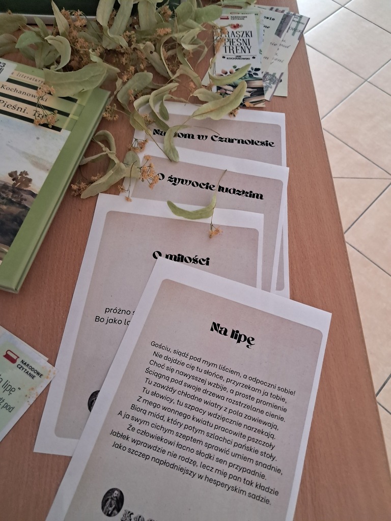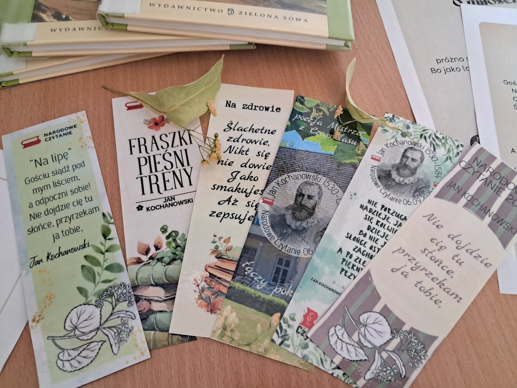 Dla odwiedzających przygotowano również okolicznościowe zakładki z cytatami Jana Kochanowskiego, które będą piękną pamiątką literackiego spotkania.