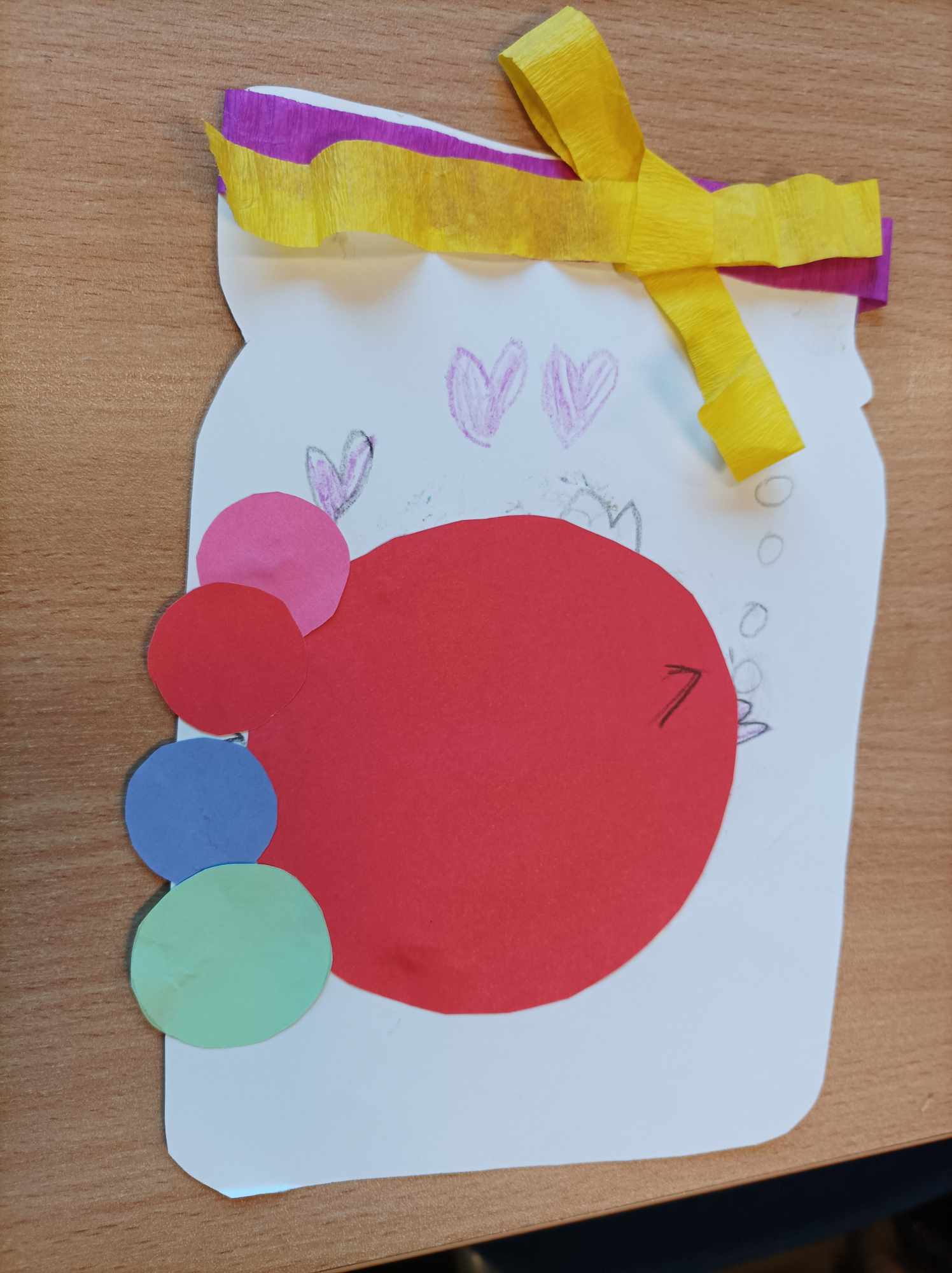 Dzieci poznały również najelegantszego olbrzyma w mieście – bohatera książki J. Donaldson o tym samym tytule. Olbrzym był bardzo życzliwy i uczynny – wszystko, co miał, chciał oddać innym. Zadaniem plastycznym dla maluchów było ozdobienie słoiczków szczęścia, w których znajdowała się rybka spełniająca życzenia, lub baloników życzliwości, a także pokolorowanie koszulki z krawatem, którą najelegantszy olbrzym w mieście na pewno bez wahania oddałby swoim przyjaciołom.