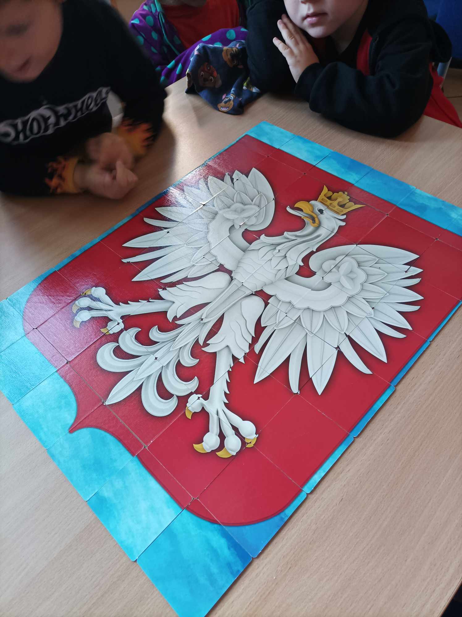 Jak wszyscy wiemy, 11 listopada obchodzimy Narodowe Święto Niepodległości. My również je świętowałyśmy wraz z dziećmi z przedszkoli: „Pod Zielonym Listkiem” i „Bajlandia” oraz uczniami kl. IB ze SP 275. Dzieci wysłuchały legendy o Lechu, Czechu i Rusie pt. „Orle gniazdo” ze zbioru „Baśnie i legendy polskie” wydawnictwa „Liwona”.Rozmawialiśmy o symbolach narodowych: hymnie, fladze i godle. Obejrzeliśmy o nich filmik zatytułowany „Polak mały” i wysłuchaliśmy piosenki „Jestem Polką i Polakiem”. Na zakończenie części literackiej dzieci wysłuchały pięknego wiersza Beaty Kołodziej pt. „Biel i czerwień” (z książki „Rodzinne świętowanie”). Układaliśmy także godło Polski z puzzli. W kąciku plastycznym dzieci kolorowały godło polskie i kotyliony. Wszyscy uczestniczący w zajęciach śpiewali hymn Polski, zachowując godną postawę.