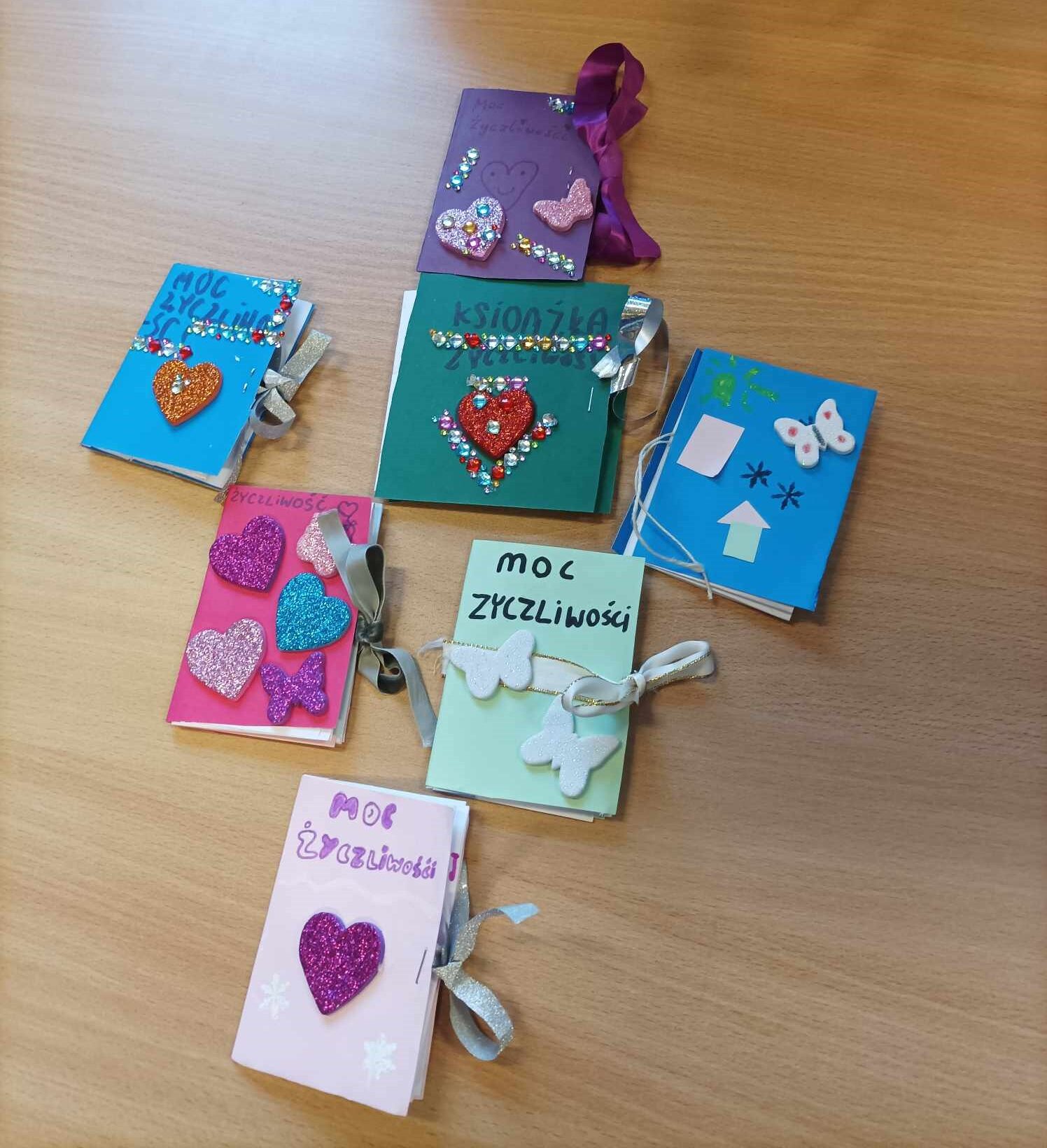 Natomiast uczniowie klasy V zapoznali się z przewrotnym tekstem P. Beręsowicza pt. „System”, z książki „Gorzka czekolada”, tom I. Obejrzeli również filmik na temat życzliwości ludzkiej. Doszliśmy do wniosku, że naprawdę potrzeba tak niewiele, żeby okazać komuś życzliwość… Wystarczy uśmiech, miłe słowo, łagodne spojrzenie w oczy drugiej osobie… Zadaniem plastycznym uczniów było wykonanie książeczki zatytułowanej „Moc życzliwości”, w której zostały umieszczone pozytywne, niosące dobry przekaz zdania.