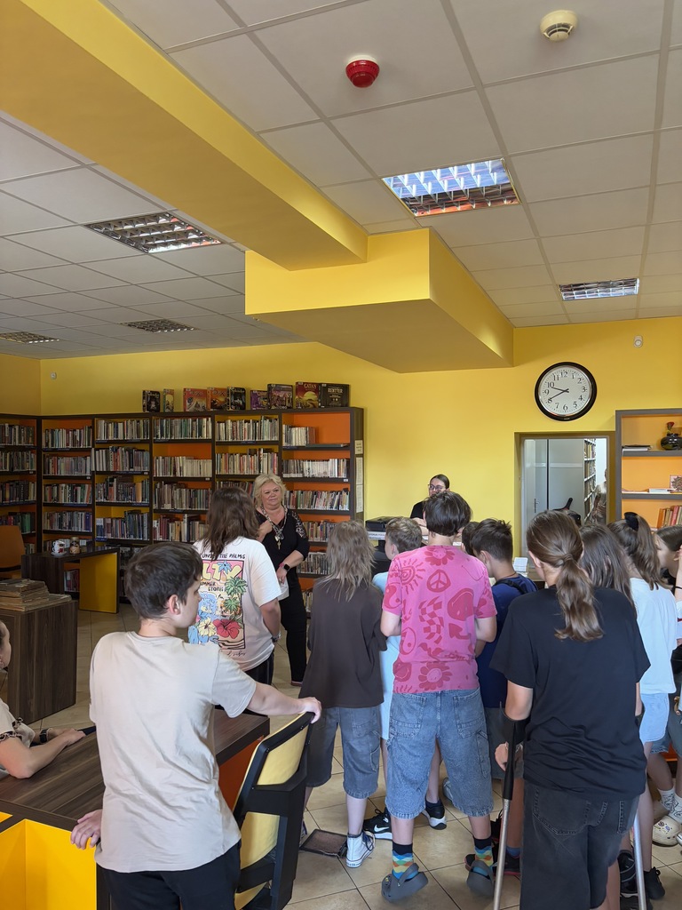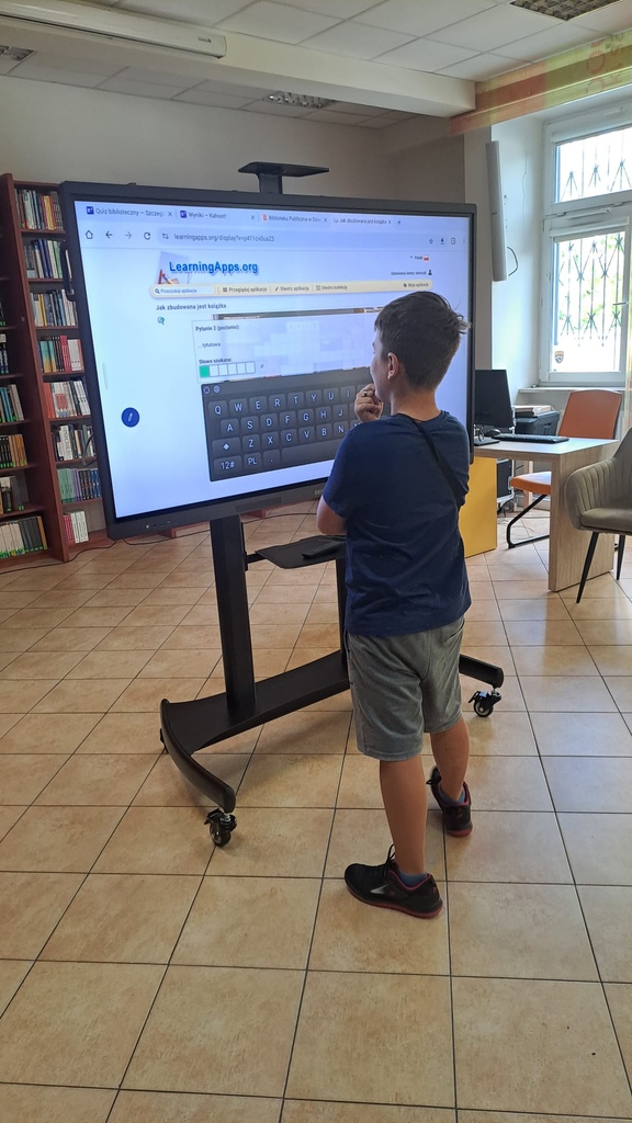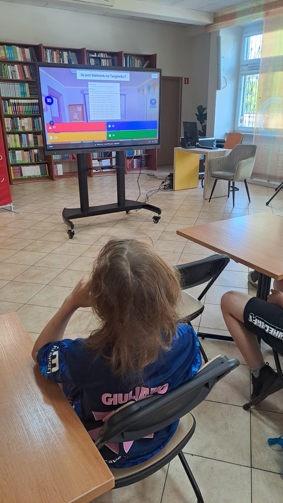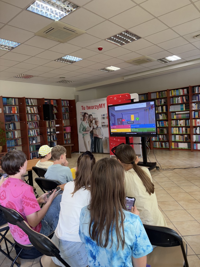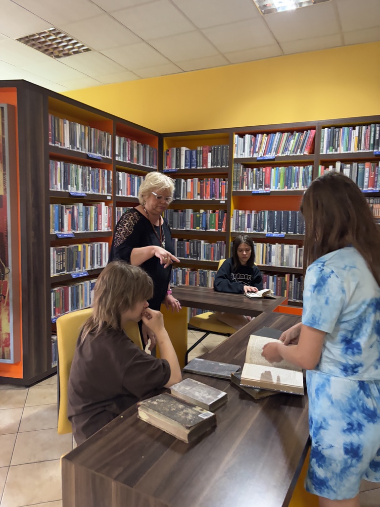 Podczas gdy uczniowie oglądali stare książki, Pani Kasia opowiadała im o bibliotece, książkach, historii patronki i o naszej placówce. Następnie rozwiązaliśmy quiz kahoot, który zawierał informacje przekazane przez Panią Kasię. Wszyscy byli bardzo zaangażowani i chętnie przystąpili do zabawy.