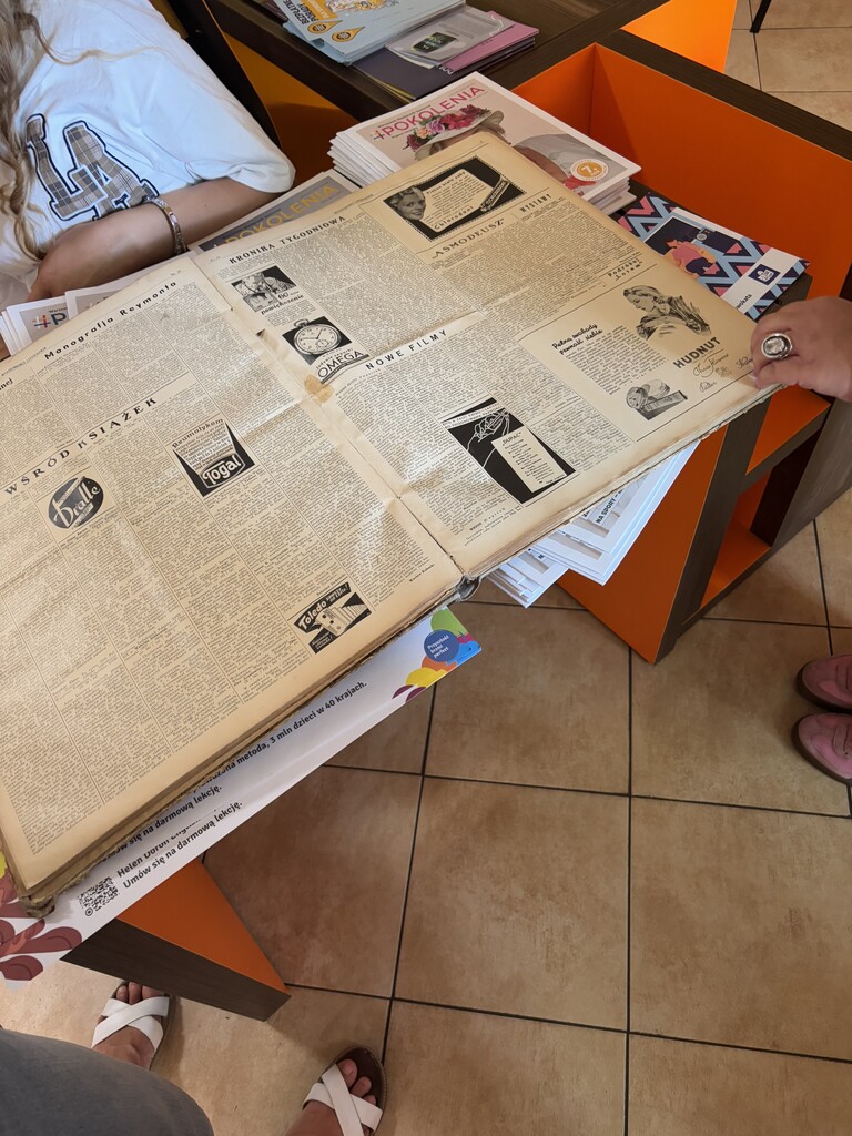 24 czerwca Czytelnię Naukową nr I im. Janiny Englert odwiedziła klasa 5C ze Szkoły Podstawowej nr 28. Lekcję biblioteczną poprowadziły bibliotekarki z Wypożyczalni nr 98 (wkrótce: Metroteka). Wspólnie przeglądaliśmy stare książki, artykuły oraz tygodniki popularne w latach 30. Młodzież była szczególnie zaciekawiona tym, jaka moda panowała w tamtym czasie i jak wyglądały reklamy. Natrafiliśmy na reklamę m.in. o „tłustym mydle”, co nas bardzo zdziwiło, ponieważ nie słyszeliśmy takiego określenia.