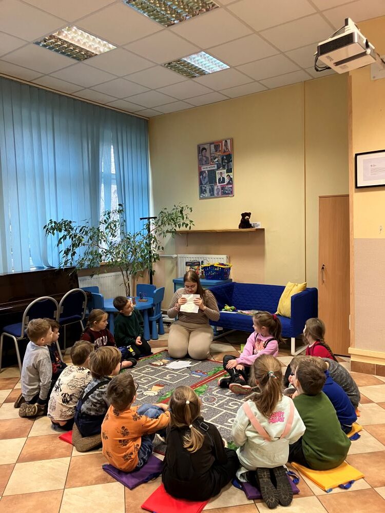 „Czytanie na dywanie” to pierwsze zajęcia, które odbyły się w Bibliotece dla Dzieci i Młodzieży nr 52 w nowym roku. Uczestniczyły w nich dzieci z Przedszkola nr 123, a prowadziła je lektorka ze szkoły językowej Early Stage w ramach współpracy z Biblioteką Publiczną w Dzielnicy Targówek.