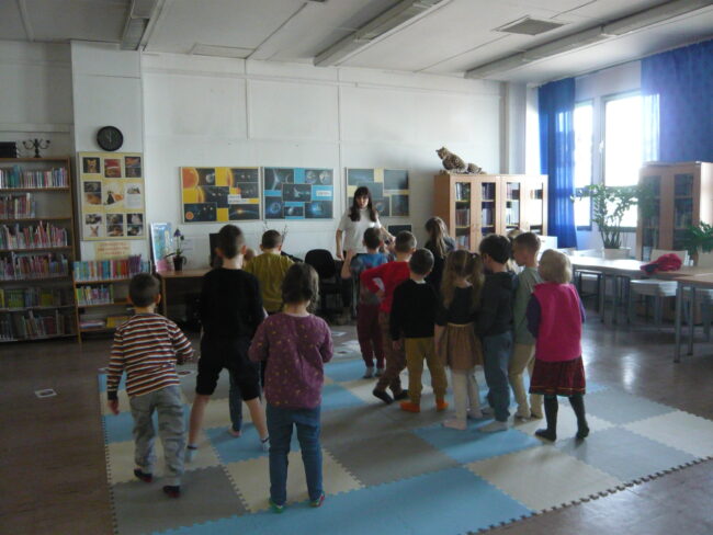 Dnia 15 marca pani Karolina ze szkoły językowej Early Stage już po raz kolejny spotkała się z dziećmi z Przedszkola 113 w Bibliotece dla Dzieci i Młodzieży nr 65. Są to zajęcia organizowane przez Bibliotekę Publiczną w Dzielnicy Targówek oraz szkołę językową Early Stage, w czasie których przedszkolaki uczą się języka angielskiego. Na podstawie tekstu „The Gruffalo” dzieci poznawały nazwy zwierząt leśnych oraz części ich ciała, np. sierść, kły, pazury.