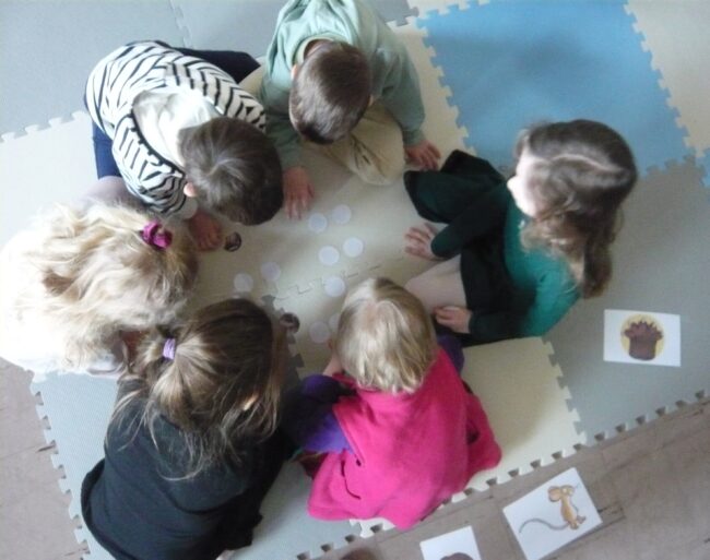 Dla utrwalenia nowo zdobytych wiadomości pani Karolina zorganizowała zabawę polegającą na wskazywaniu obrazków z nazwami zwierząt. Później wszyscy razem powtarzali nowe słówka w rytm piosenki We Will Rock You zespołu Queen. Na zakończenie zajęć przedszkolaki otrzymały pamiątkowe nalepki ze szkoły Early Stage.