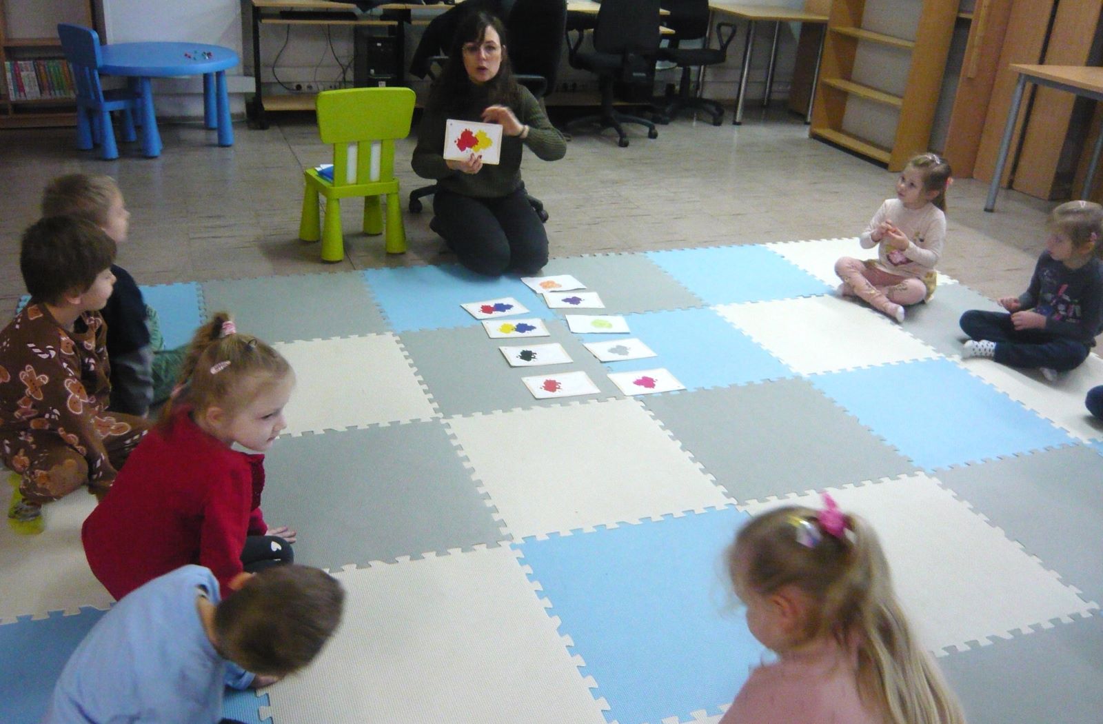 21 stycznia 2025 r. w Bibliotece dla Dzieci i Młodzieży nr 65 odbyły się zajęcia z języka angielskiego prowadzone przez szkołę językową Early Stage. Uczestniczyły w nich dzieci z Przedszkola nr 120. Przedszkolaki siedząc tradycyjnie na miękkim, piankowym dywanie, wspólnie bawiły się i uczyły nazw kolorów w języku angielskim. W czasie praktycznych zajęć mieszania podstawowych barw plasteliny poznawały nowe kolory (np. żółty + niebieski = zielony). Przykłady pokazywane były na kartkach, farbach i innych materiałach plastycznych. Poprzez zabawy ruchowe i piosenki ułatwiające zapamiętywanie barw dzieci przyswajały nowe nazwy słówek związanych z kolorami. Słuchając opowiastki Emily Gravett „Blue Chameleon” o przygodach bohaterów w świecie barw, nasi goście utrwalali nowo poznane słownictwo.