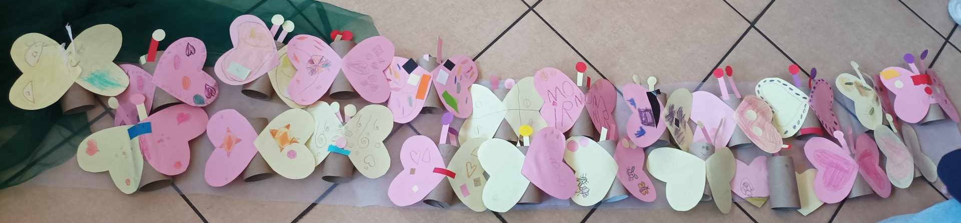 W kąciku plastycznym przedszkolaki wykonały motylki z rolki.