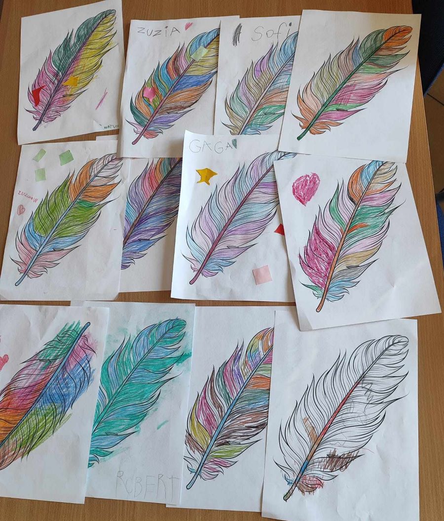 Dzieci z „Serduszka” posłuchały pięknej historyjki autorstwa S. Dieckmann pt. „Iskierka odwagi”. Zadaniem plastycznym było pokolorowanie lub wyklejenie piórka.