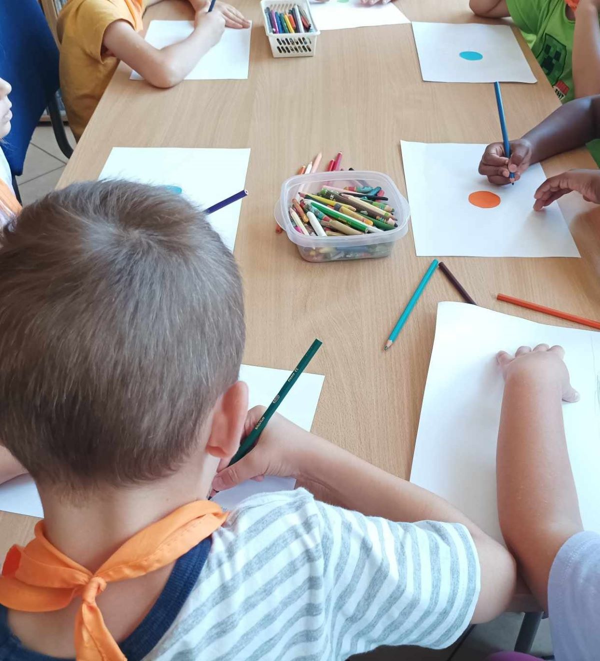 We wrześniu obchodziliśmy również Dzień Kropki (15 września). Jest to święto, podczas którego każdy z nas pokazuje swoją kreatywność i moc tworzenia różnych rzeczy. Sześciolatki z Przedszkola z Serduszkiem – po wysłuchaniu uroczych opowiadań z książki R. Witka „Przedszkole imienia Barbary Wiewiórki” i rozmowie o przygodach Malwinki Krupnik – wykonały rysunki, którym początek dała przyklejona do kartki kropka. W ten sposób powstały niezwykłe, różnorodne i kreatywne prace.