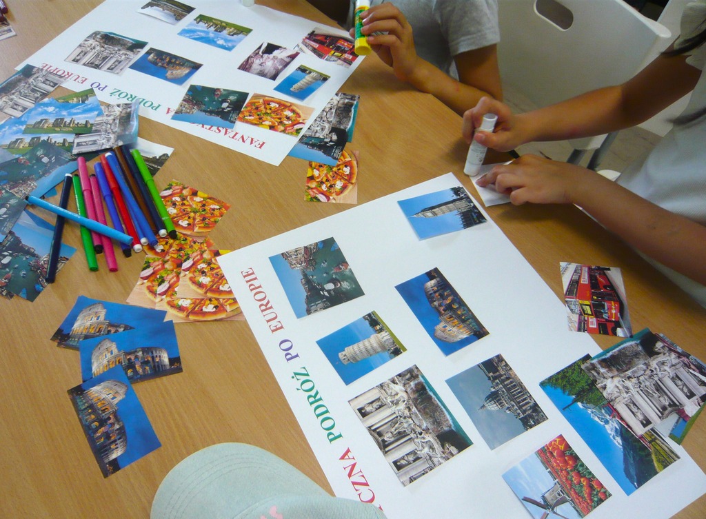 Odwiedziliśmy Francję, Holandię, Wielką Brytanię, Włochy i Szwajcarię, poznając ich zabytki, historię oraz ciekawe miejsca dzięki barwnej prezentacji multimedialnej. Na zakończenie przygotowaliśmy własne plakaty i foldery reklamowe, wykorzystując różne techniki plastyczne. Nie zabrakło też wspólnej dyskusji i piosenek, które wprowadziły nas w doskonały nastrój.