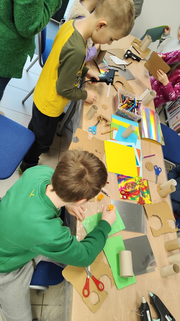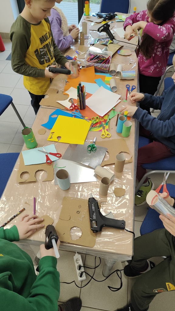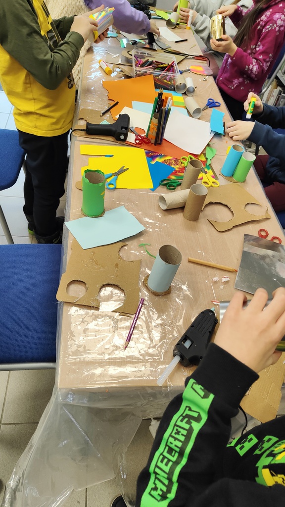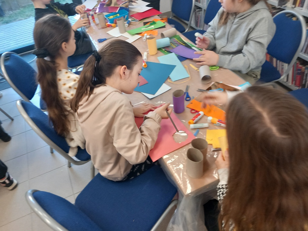 Dziękujemy wszystkim za wspólnie spędzony czas, podczas którego w ruch poszły pistolety na gorący klej, nożyczki, kleje i mnóstwo kolorowego papieru. Ponadto podczas naszych spotkań przekonywaliśmy, że czas wolny wcale nie musi wiać nudą! W krainie książek jeździliśmy na nartach, kręciliśmy hula-hoop, rzucaliśmy kulką do celu, bawiliśmy się w zgaduj-zgadulę oraz wiele innych zabaw, do których – mamy nadzieję – uczestnicy zajęć będą wracać w domowym zaciszu i nie tylko.