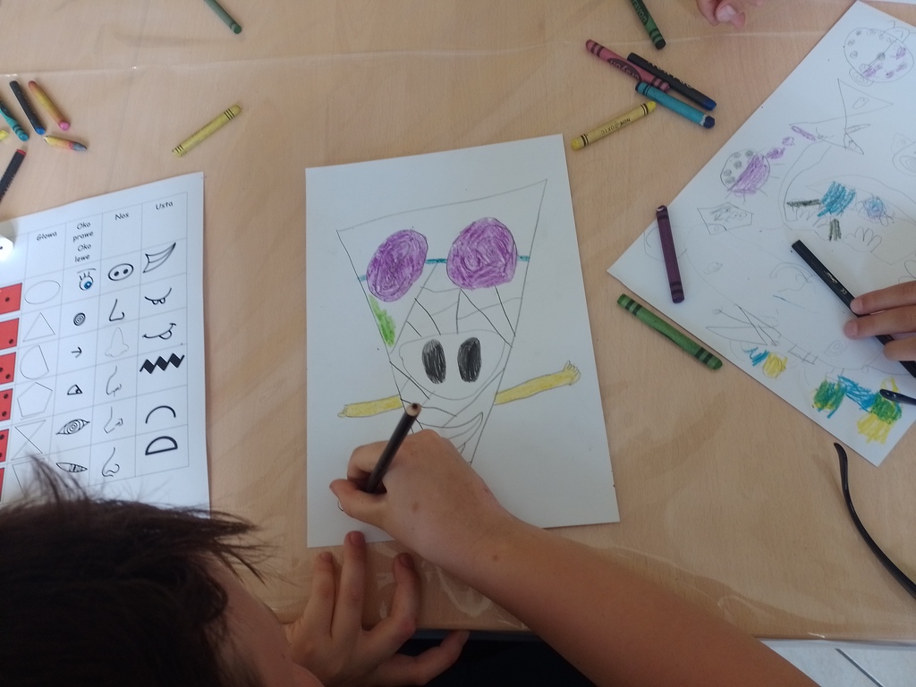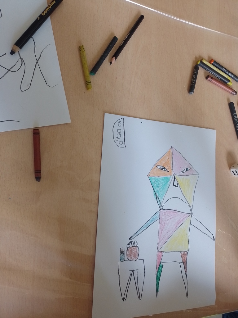 Podczas zajęć dzieciom przedstawiono krótki życiorys i twórczość hiszpańskiego malarza Pabla Picassa. Jeden z najsłynniejszych artystów wszech czasów był współtwórcą kubizmu – oryginalnego nurtu w malarstwie. Po wysłuchaniu wiadomości o malarzu dzieci przystąpiły do rysowania portretu metodą „à la Picasso”. Każdy otrzymał planszę z ponumerowanymi fragmentami twarzy – były tam różne usta, oczy, nosy i różne kształty głów. To z nich należało skomponować swój portret. Wyrzucona kostką do gry liczba wskazywała, spod jakiego numeru kopiujemy daną część twarzy. Było przy tym sporo zaskoczenia, zdziwienia i śmiechu, a na końcu – niemała satysfakcja.