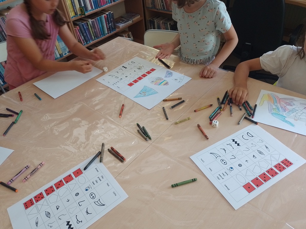 Dwie grupy dzieci – jedna ze Szkoły Podstawowej nr 52, a druga ze Szkoły Podstawowej nr 206 – biorące udział w „Lecie w Mieście” postanowiły skorzystać z oferty Biblioteki dla Dzieci i Młodzieży nr 40 przy ul. Suwalskiej 11. Umówiły się z nami na spotkania we wtorek 9.07.2024. Z tej okazji p. Bibliotekarka przygotowała bardzo ciekawe zajęcia, zatytułowane „Bądź jak Picasso”.