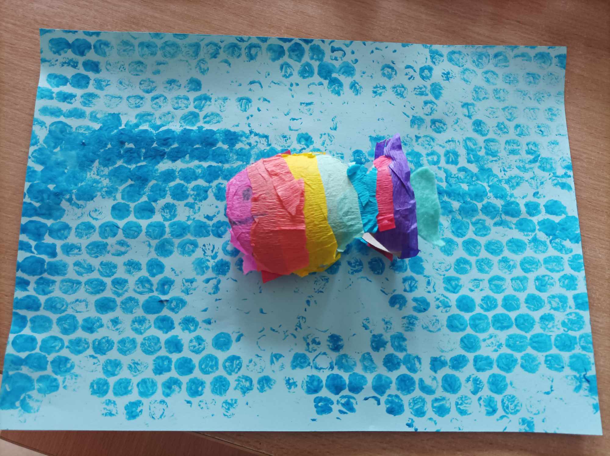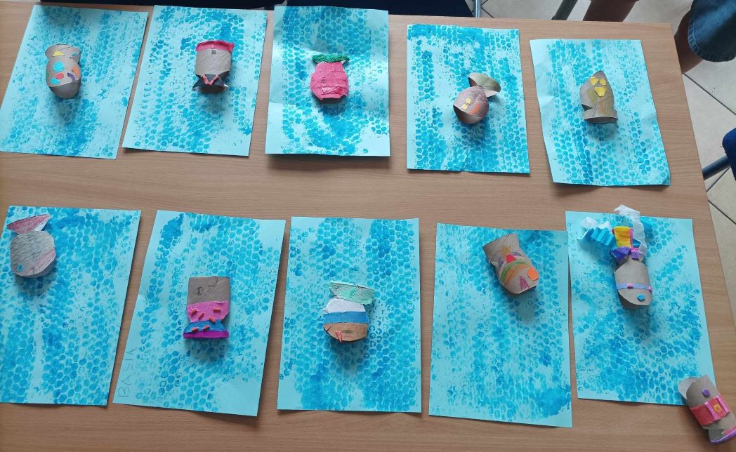 W kąciku prac plastycznych uczestnicy „Lata w mieście” wykonali rybki z rolki, które przyklejali na kartkę papieru imitującą lazurową wodę – nieodzownie kojarzącą się z wakacjami. Inna grupa wykonała plakaty wakacyjne, które przedstawiały zachód słońca nad morzem lub pobyt na plaży.