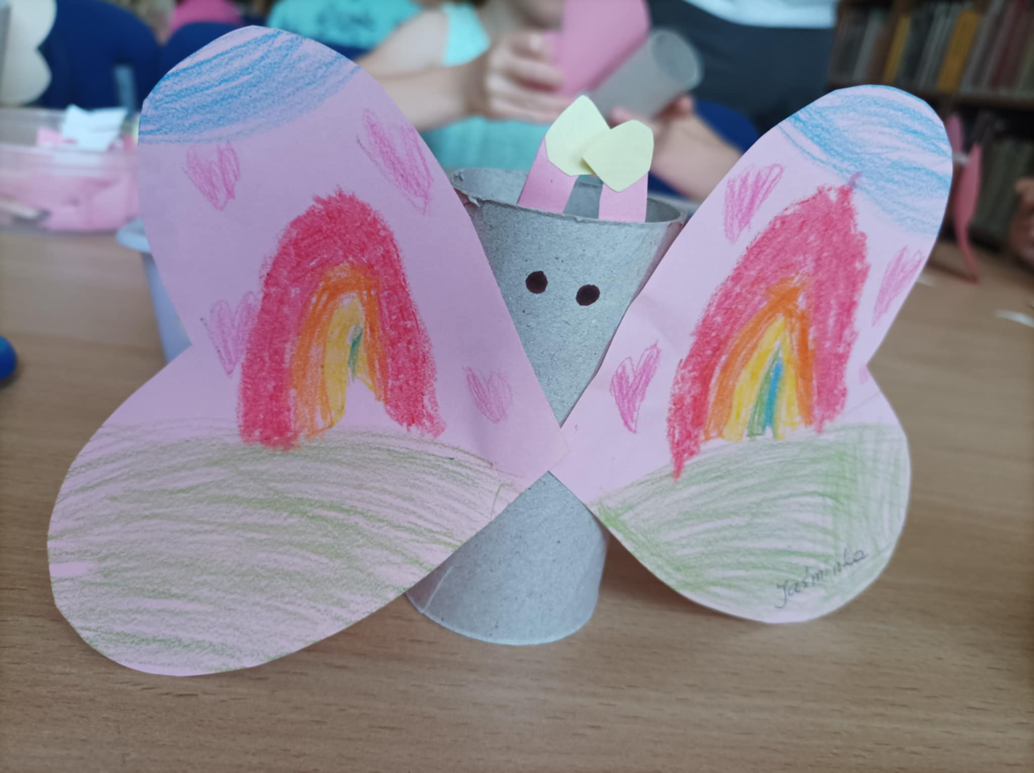 Oprócz spotkań z dziećmi w ramach akcji „Lato w mieście” w lipcu spotkałyśmy się dwa razy z przedszkolakami z „Naszego Domku”. 4-latki oraz 5-6 latki zapoznały się z naszą biblioteką i dowiedziały się, co zrobić, aby się do niej zapisać. Poznały również projekt „Mała książka – wielki człowiek”. Wysłuchały wesołego i pouczającego opowiadania J. Bartosik „Papier, kamień, nożyce” oraz opowieści o miłości autorstwa A. Gębki – „Mamo, jak wygląda miłość?”. Nie mogło zabraknąć historyjek o psie Łatku i śwince Leopoldziku. Maluchy obejrzały także „Rower Walentynki” w teatrzyku kamishibai. W kąciku plastycznym dzieci wykonały letnie motylki z rolki.