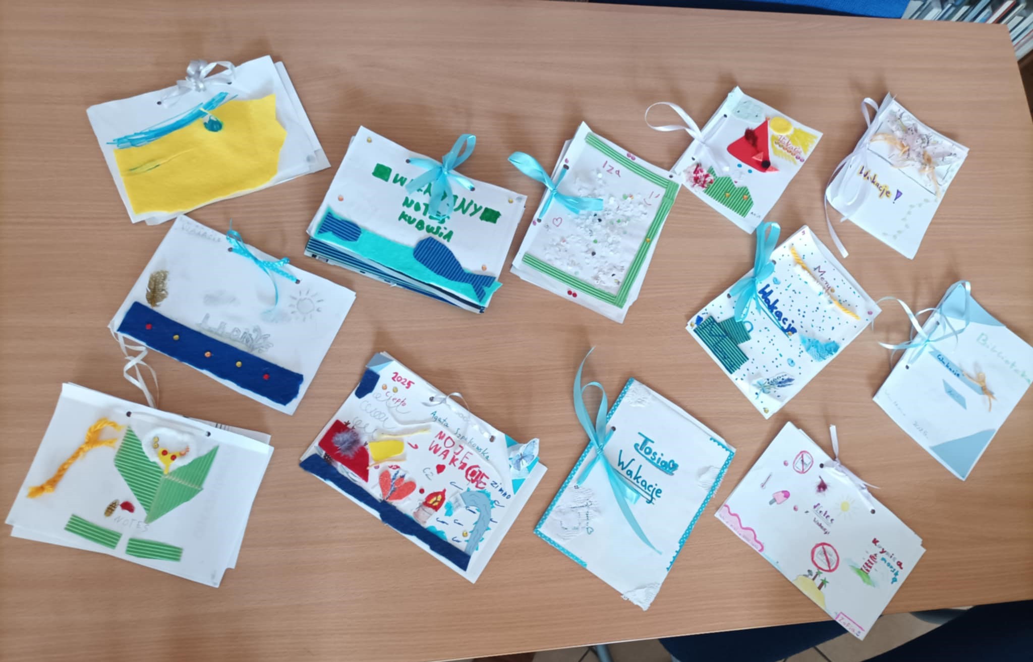 W drugiej części spotkania dzieci przy pomocy kości opowieści („Story Cubes” i „Opowiem ci historyjkę”) oraz kart kreatywnych tworzyły swoje własne opowiadania. Niektóre z nich były bardzo magiczne… Aktywnością plastyczną było wykonanie z materiałów ekologicznych wakacyjnego notesika ozdobionego diamencikiem oraz lampionu na pożegnanie wakacji.