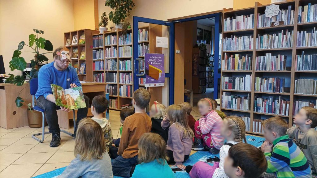W listopadowy poranek 24.11.2023 r. do Biblioteki dla Dzieci i Młodzieży nr 53 przyszła grupa „Pszczółki” z Przedszkola „Pod Zielonym Listkiem”. Przedszkolaki uczestniczyły w drugim spotkaniu z cyklu „Czytanie na dywanie” z Early Stage.