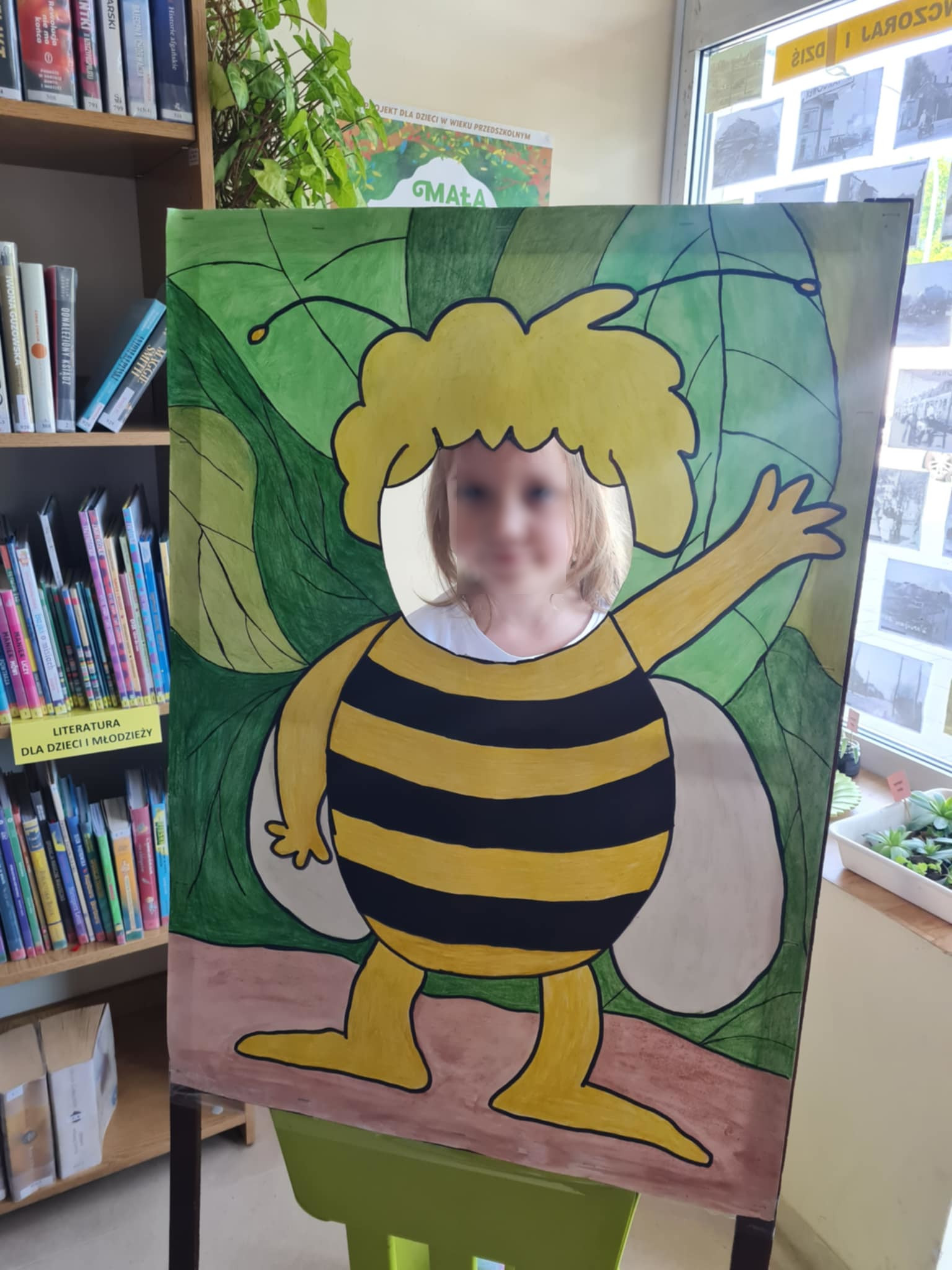 Dla najmłodszych z okazji Dnia Dziecka atrakcją była możliwość zrobienia sobie zdjęcia z Pszczółką Mają i otrzymania skromnych upominków od pracowników biblioteki.
