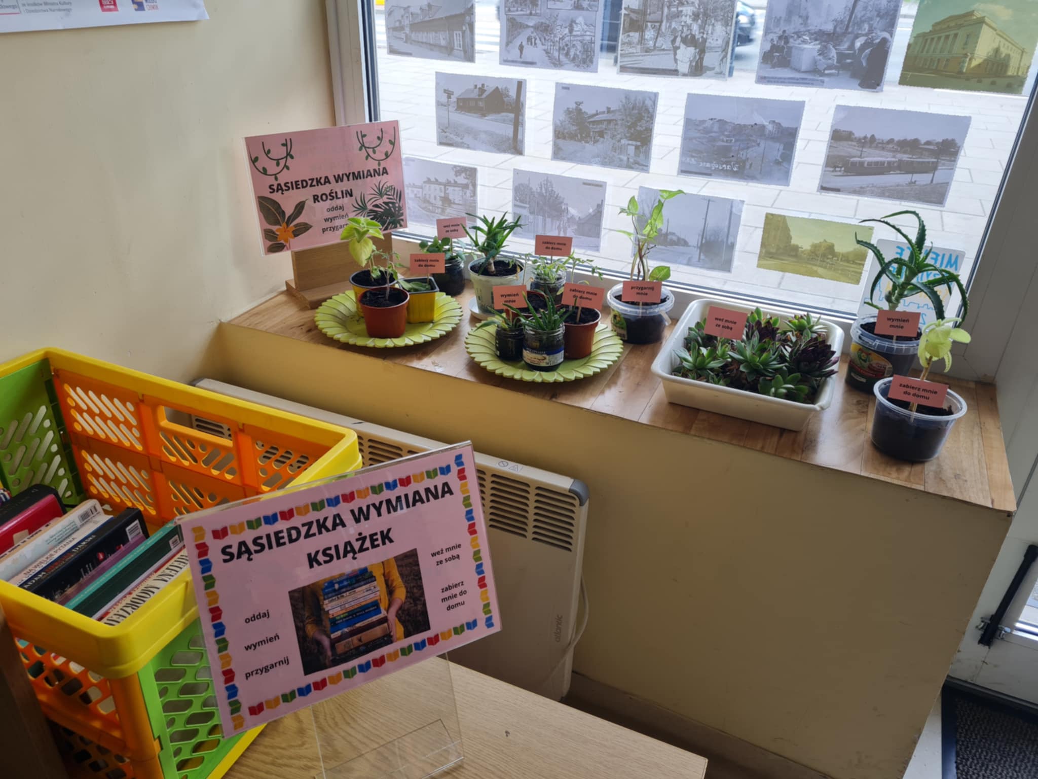 W ramach Dni Sąsiedzkich zorganizowaliśmy wymianę roślin i książek. Każdy mógł przynieść roślinki lub książki i wymienić je na inne.