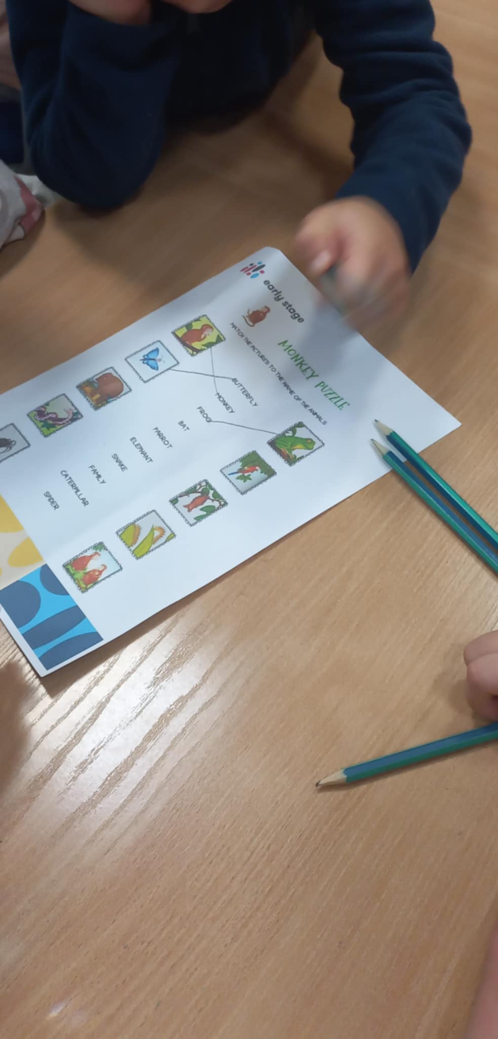 13 maja do Biblioteki dla Dzieci i Młodzieży nr 52 przy ul. Rembielińskiej 6A na zajęcia przyszła grupa Pszczółki z przedszkola nr 18. Dzięki pani Karolinie Poniatowskiej, lektorce angielskiego, dzieci poznały, jakie zwierzęta żyją w dżungli. Przedszkolaki z wielką chęcią i zaangażowaniem powtarzały po pani Karolinie wszystkie słowa po angielsku oraz świetnie sobie poradziły z zadaniem połączenia w pary poszczególnych zwierzaków. Następnie wysłuchały książeczki pt. „Monkey Puzzle” Julii Donaldson w specjalnie przygotowanych na tę okazję maskach.