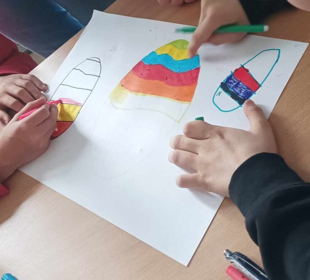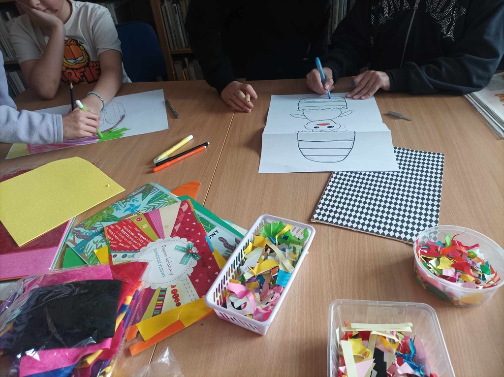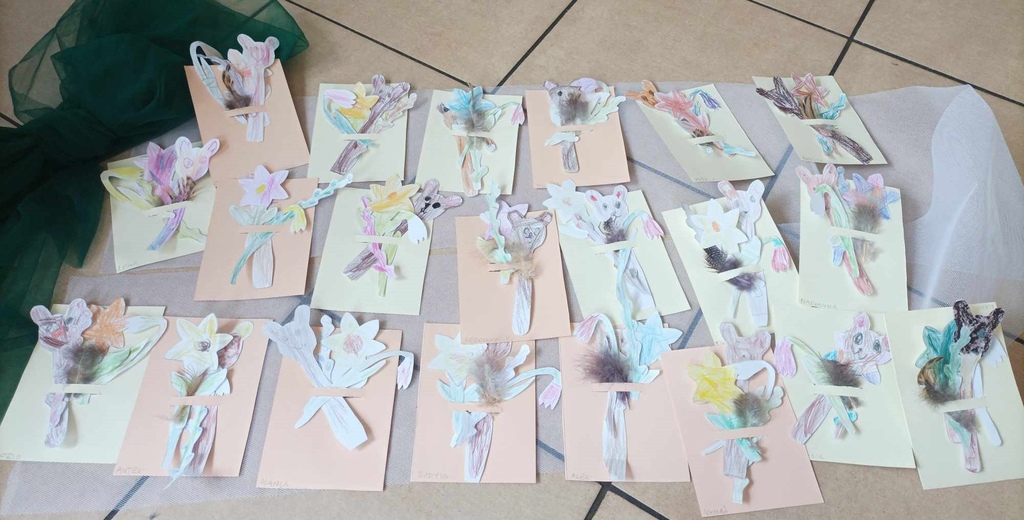Zadanie plastyczne polegało na wykonaniu w grupach pracy plastycznej, na której przedstawione będą symbole związane z Wielkanocą, np. jajko, wielkanocny koszyczek itp.