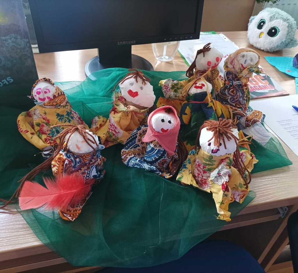 - Panią Wiosnę – laleczkę z rolki, włóczki i kolorowego materiału, która była inspirowana motankami.