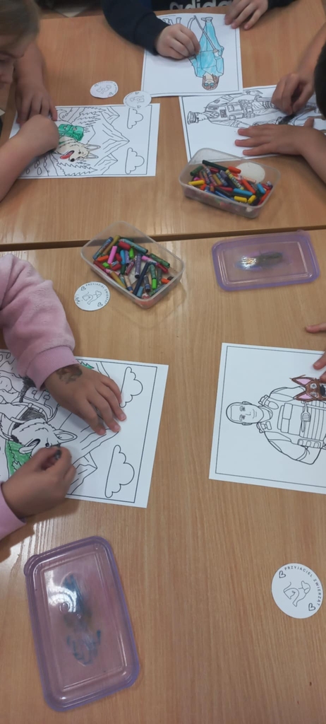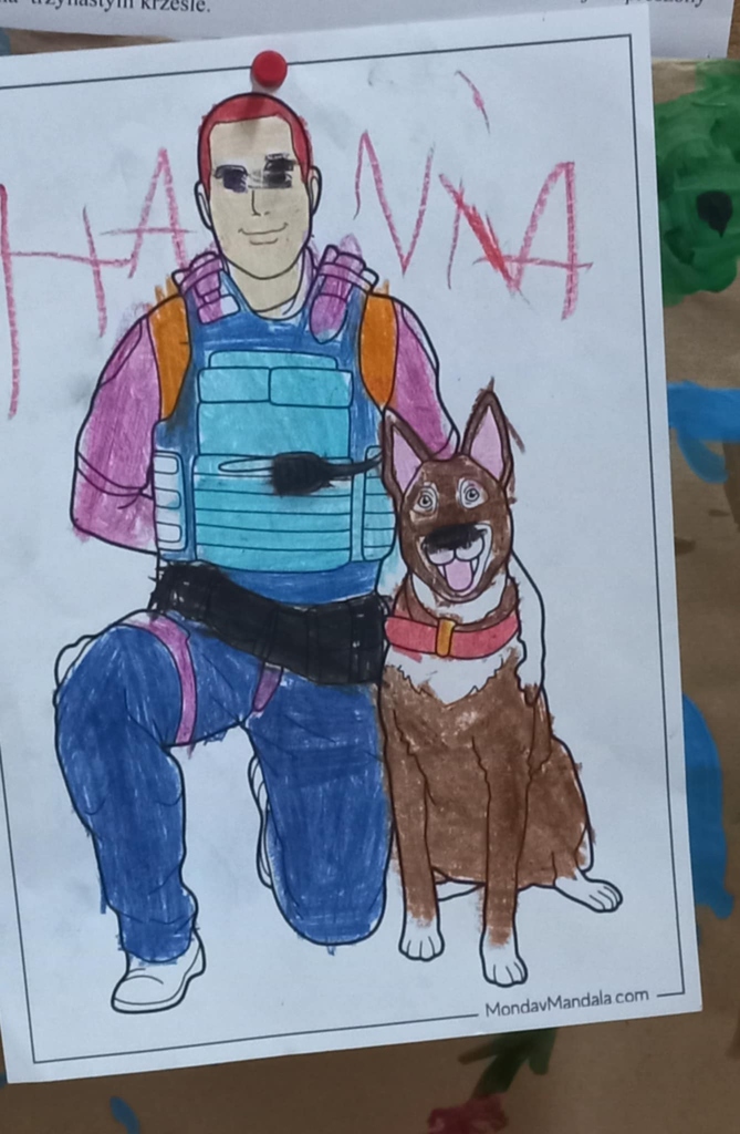 Na zakończenie spotkania uczniowie otrzymali odznaki „Przyjaciel Zwierząt” oraz pokolorowały psy do zadań specjalnych.