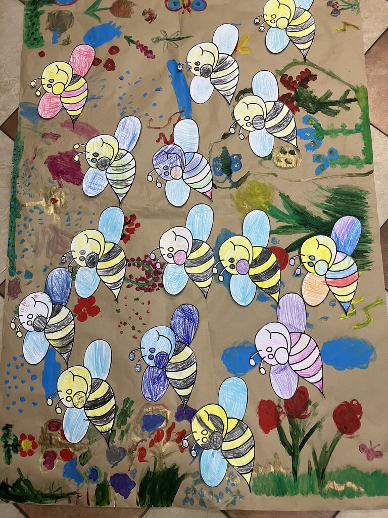 Na zakończenie stworzyliśmy plakat – piękną, kolorową łąkę pełną pszczół.