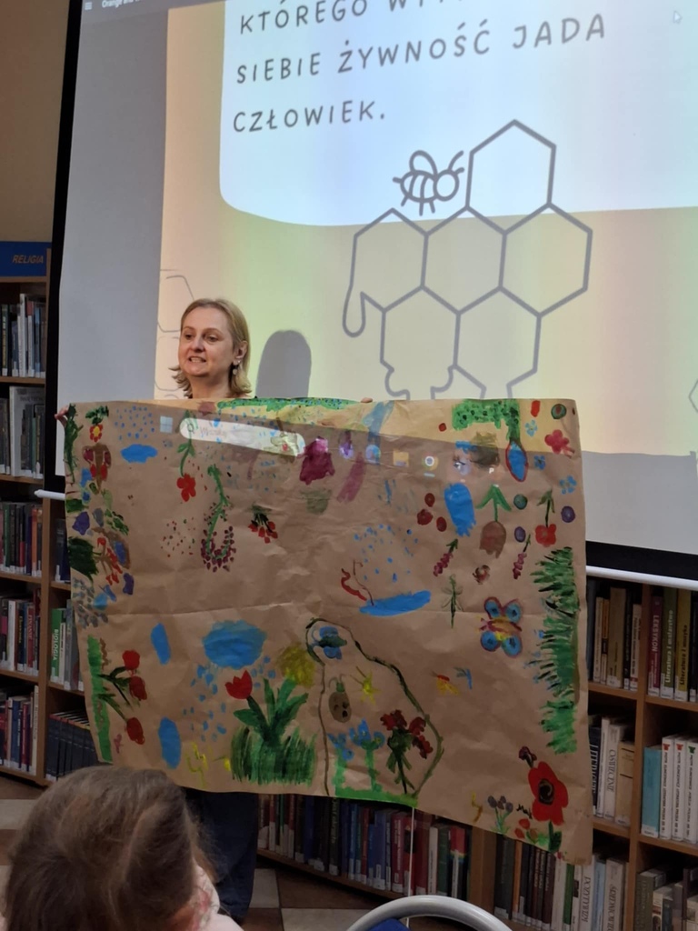 Ostatnie z trzech przeprowadzonych w przez Bibliotekę dla Dzieci i Młodzieży nr 52 zajęć w ramach tego projektu dotyczyło pszczół. Życie i przetrwanie tych bardzo pożytecznych owadów jest kluczowe, ponieważ to pszczoły zapylają około 80% roślin, które są pożywieniem dla ludzi i zwierząt. Te pracowite zwierzęta produkują miód, pyłek, propolis i pierzgę, które mają zastosowanie w różnych dziedzinach, np. przemyśle spożywczym, farmaceutycznym czy kosmetycznym. Niestety tym owadom bardzo szkodzą chemiczne opryski stosowane w rolnictwie, zanieczyszczenia środowiska oraz zmiany klimatyczne.
