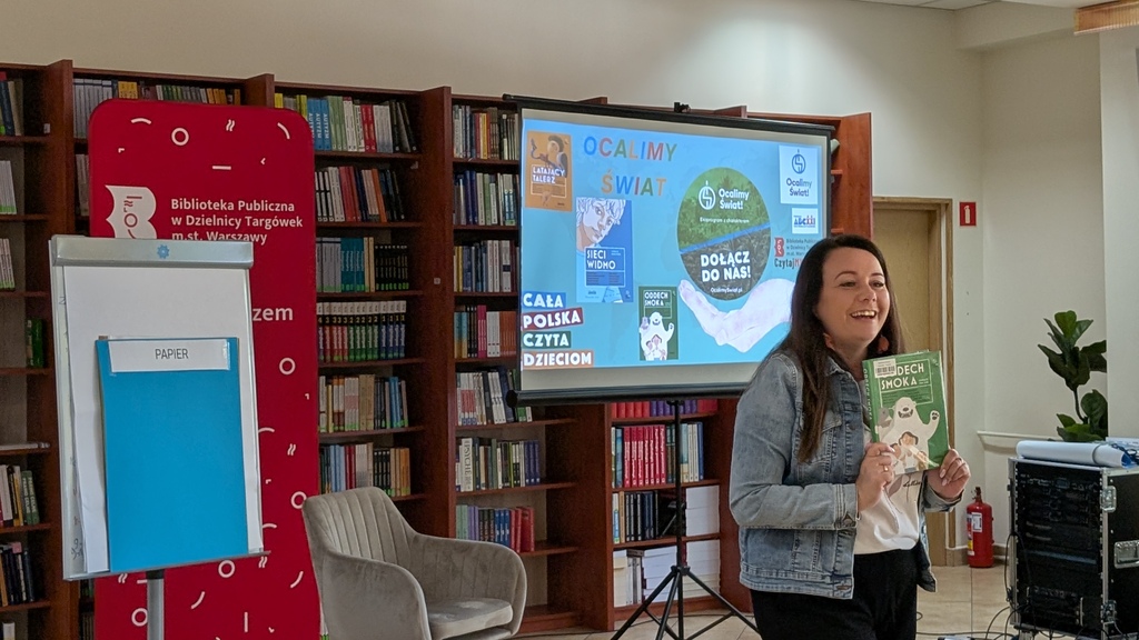Spotkanie odbyło się w ramach programu edukacyjnego „Ocalimy świat”, organizowanego przez Fundację „ABCXXI – Cała Polska czyta dzieciom”. Prowadząca zajęcia bibliotekarka sięgnęła po wyjątkową książkę – „Oddech smoka”. Przeczytała jedno z opowiadań zamieszczonych w tym ekologicznym zbiorze literackim dla dzieci, stworzonym specjalnie na potrzeby projektu.