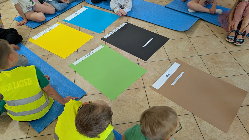 Na koniec odbyła się ekologiczna gra praktyczna – bibliotekarka pokazywała różne „śmieciowe zagadki”, a dzieci wskazywały odpowiedni pojemnik. Niebieski, zielony, żółty… Kolory recyklingu nie mają przed nimi tajemnic!