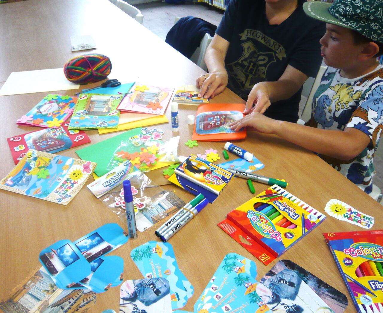 W czasie „Lata w Mieście” nie zabrakło też zwolenników kreatywnych warsztatów plastycznych – „Pocztówka z wakacji”. Tworzyliśmy piękne kartki podróżnicze z pozdrowieniami, używając różnych technik zdobniczych.
