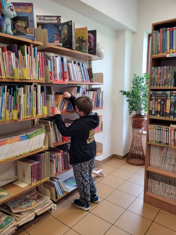 Po wysłuchaniu wszystkich pytań i przekazaniu wszelkiej wiedzy dotyczącej wypożyczania, pierwszaki udały się do sali z książkami dla dzieci i młodzieży. Czas spędzony na indywidualnej lekturze wybranych książek minął jak zwykle za szybko. Spotkanie z biblioteką skończyło się po godzinie i trzeba było wracać do szkoły. Z niechęcią i ociąganiem dzieci opuszczały bibliotekę, patrząc na pozostawione książki pełne ciekawych historyjek i śmiesznych zwierzaków.