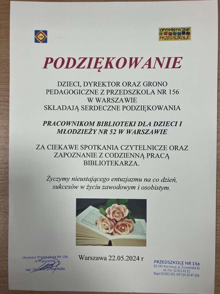 Nie sposób wymienić wszystkich tematów zajęć. Do tych spotkań przygotowujemy się bardzo starannie, aby przedszkolaki wychodziły z biblioteki z przekonaniem, że to wspaniałe, bardzo interesujące miejsce i aby chciały do nas wracać. Bardzo też cieszą nas piękne podziękowania, które dostajemy od dzieci i ich wychowawców. Na kolejne lekcje biblioteczne zapraszamy już od nowego roku szkolnego.