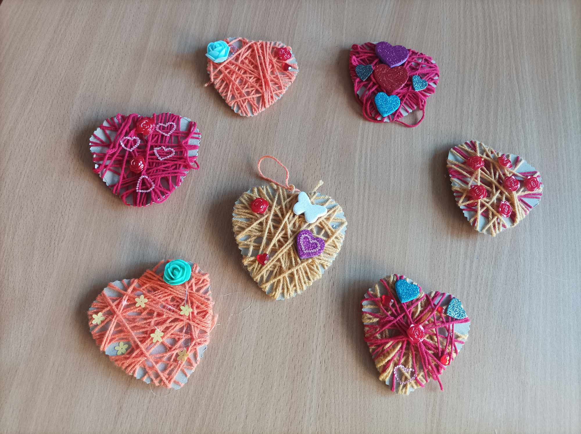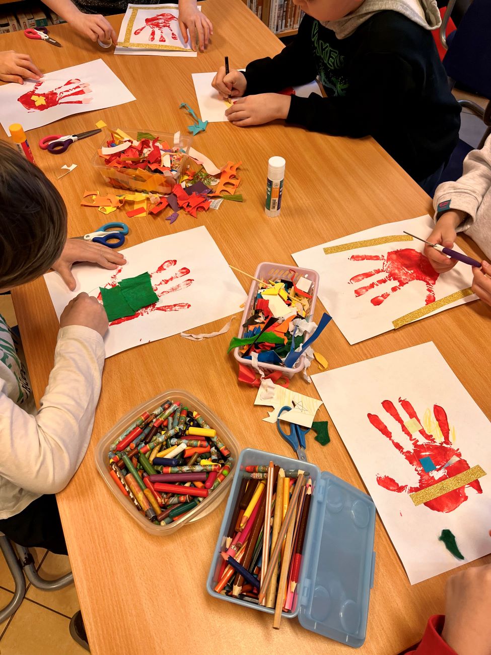 Z historią B. Lindgren zapoznali się też uczniowie z klasy IV z PSP nr 62 przy ul. Skrajnej 10. W związku z tym, że dzieci odwiedziły nas po dłuższej przerwie, porozmawialiśmy o bibliotece, przypomnieliśmy zasady wypożyczania książek, a także przeczytaliśmy magiczną opowieść o bibliotece i bibliotekarce autorstwa I. Płachty-Pietrzak pt. „Wypożyczalnia skrzydeł”. Obie zaprezentowane historie mają uniwersalną, ponadczasową wymowę i mówią o potrzebie doświadczania przez każdego człowieka miłości i dobroci… Z okazji zbliżających się wielkimi krokami walentynek uczniowie wykonali serduszka z kartonu i włóczki dla bliskich sobie osób.