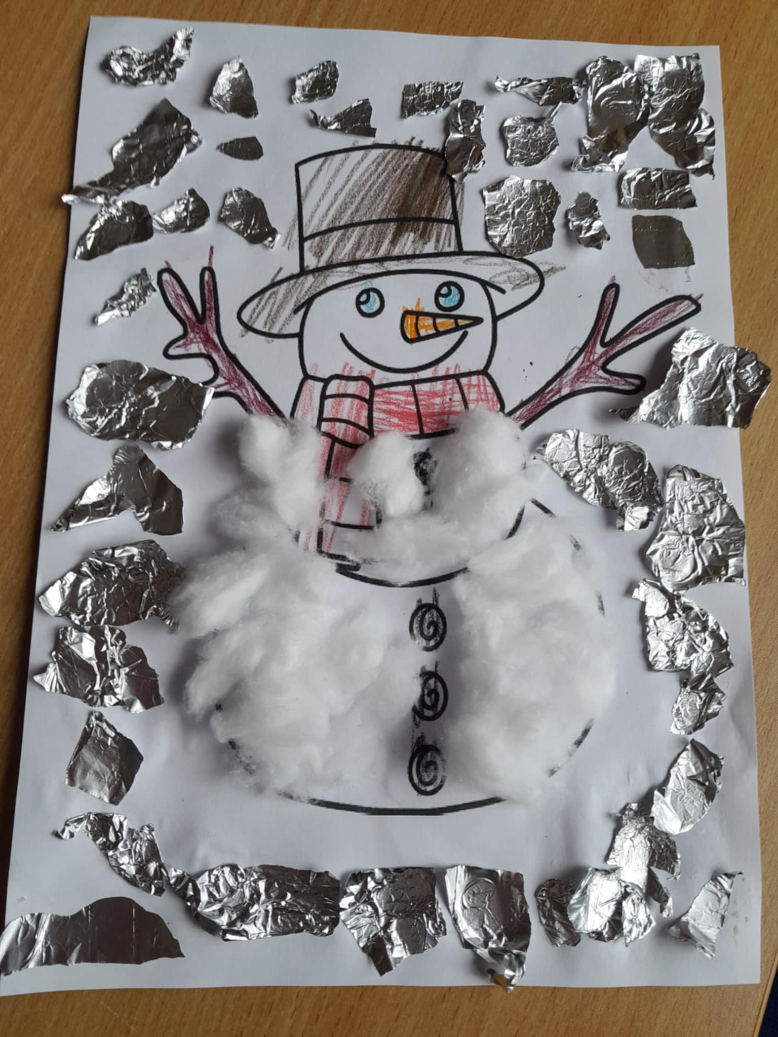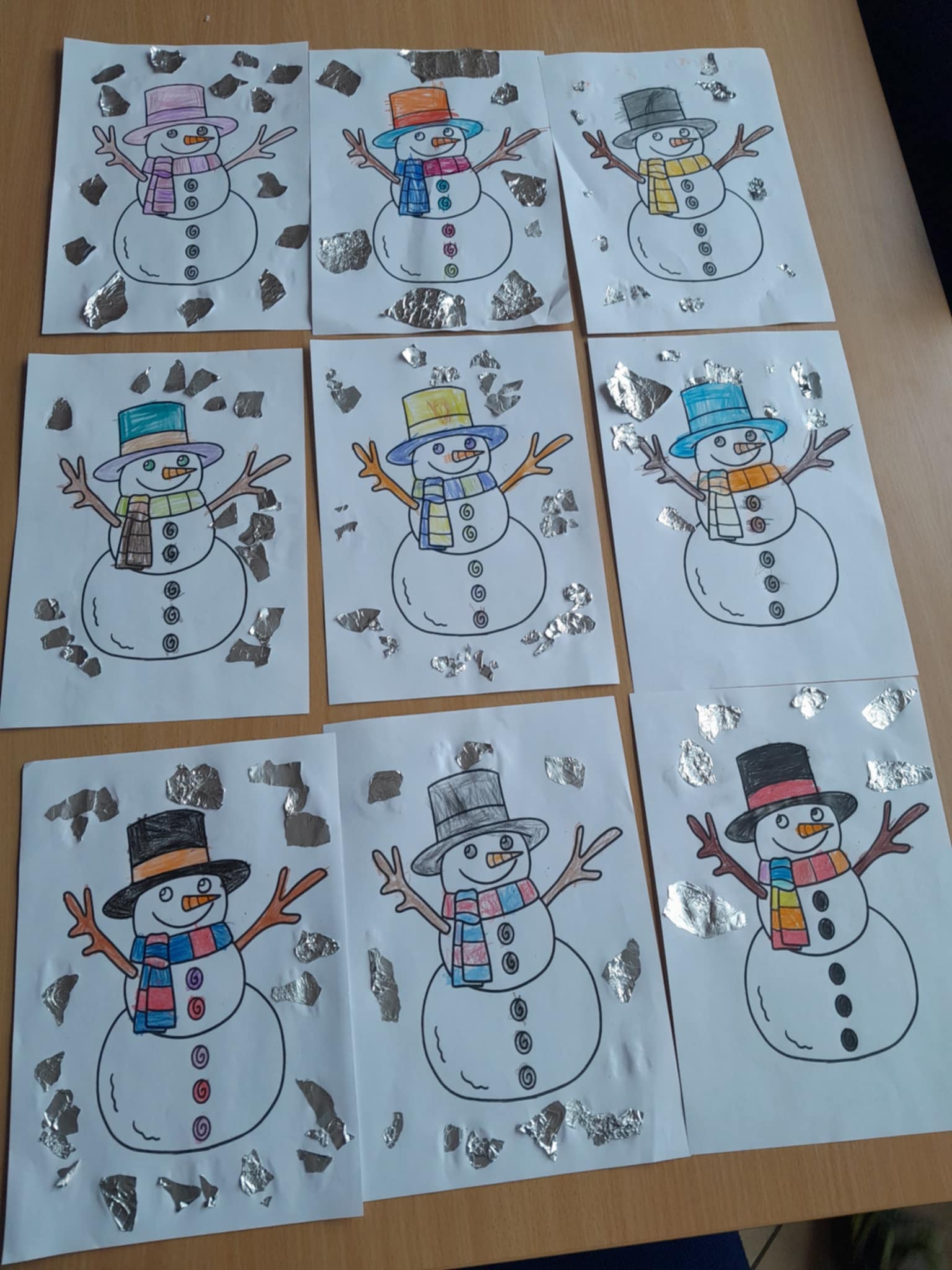 Z grupą „Pszczółek” z przedszkola „Pod Zielonym Listkiem” również powróciliśmy do świątecznej atmosfery i przeczytaliśmy piękny, momentami wzruszający tekst autorstwa E. Guendelsberger „Czerwone saneczki”. Zapoznaliśmy się też z bardzo zabawną, ale również pouczającą historią D. Gellert pt. „ Dzień, w którym Leopold czuł… złość”. W ramach aktywności plastycznej dzieci wykonały bałwanka na kartonie.