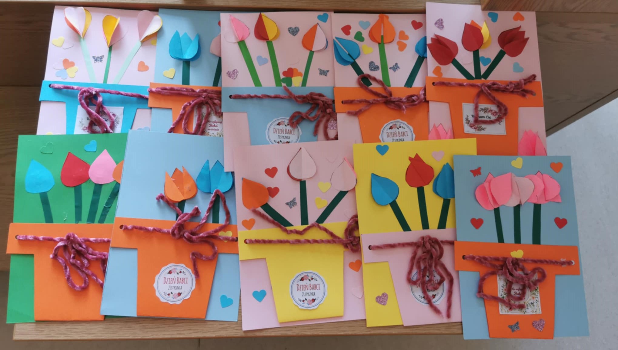 Kolejne spotkanie związane było ze świętem Babci i Dziadka, podczas którego przeczytaliśmy opowiadania o babci i dziadku z książki Renaty Piątkowskiej „Piegowate opowiadania”, a następnie dzieci zrobiły piękne laurki, które później otrzymali nasi czytelnicy – seniorzy.
