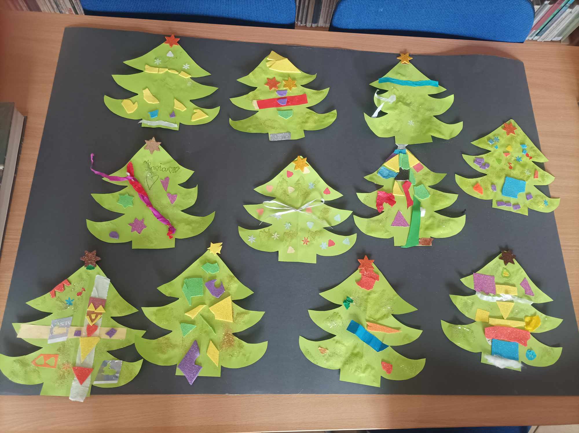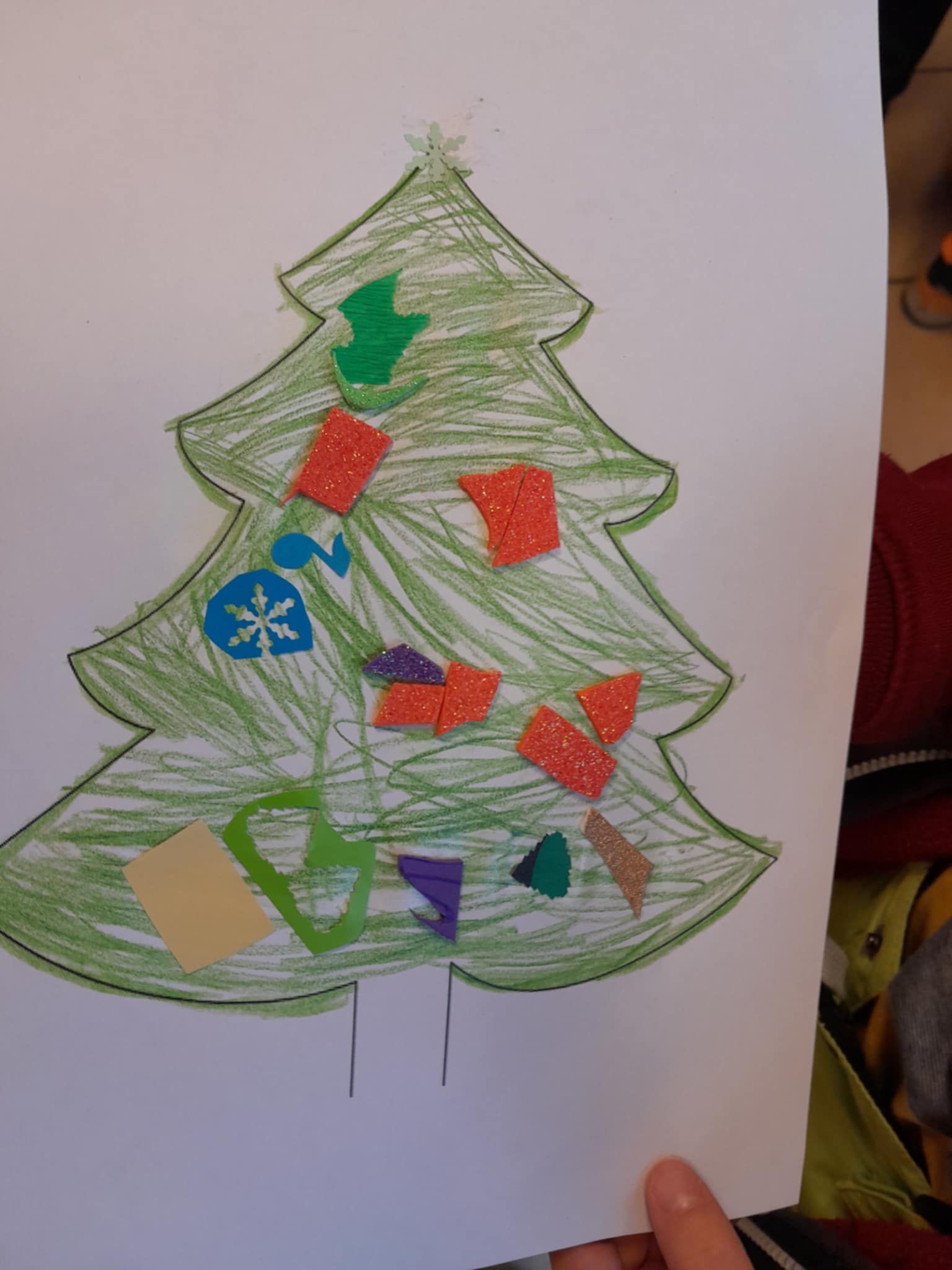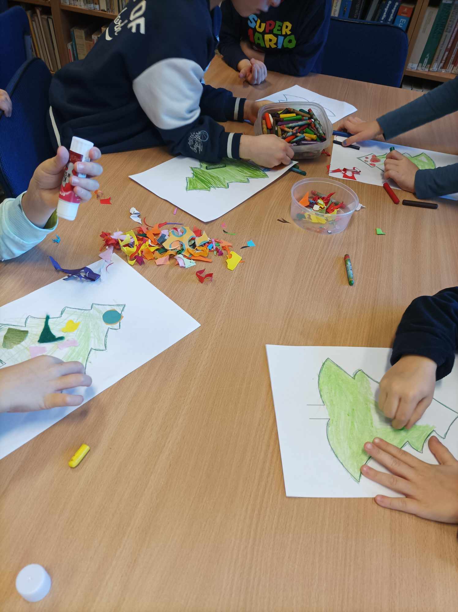 W świątecznych spotkaniach uczestniczyły również sześciolatki z grupy „Motylki” z Przedszkola „Pod Zielonym Listkiem”, które poznały „Pomocników Mikołaja” B. Timmsa i wykonały choinkę z kolorowych pasków papieru, której szczyt przyozdobiły świecącą gwiazdką.