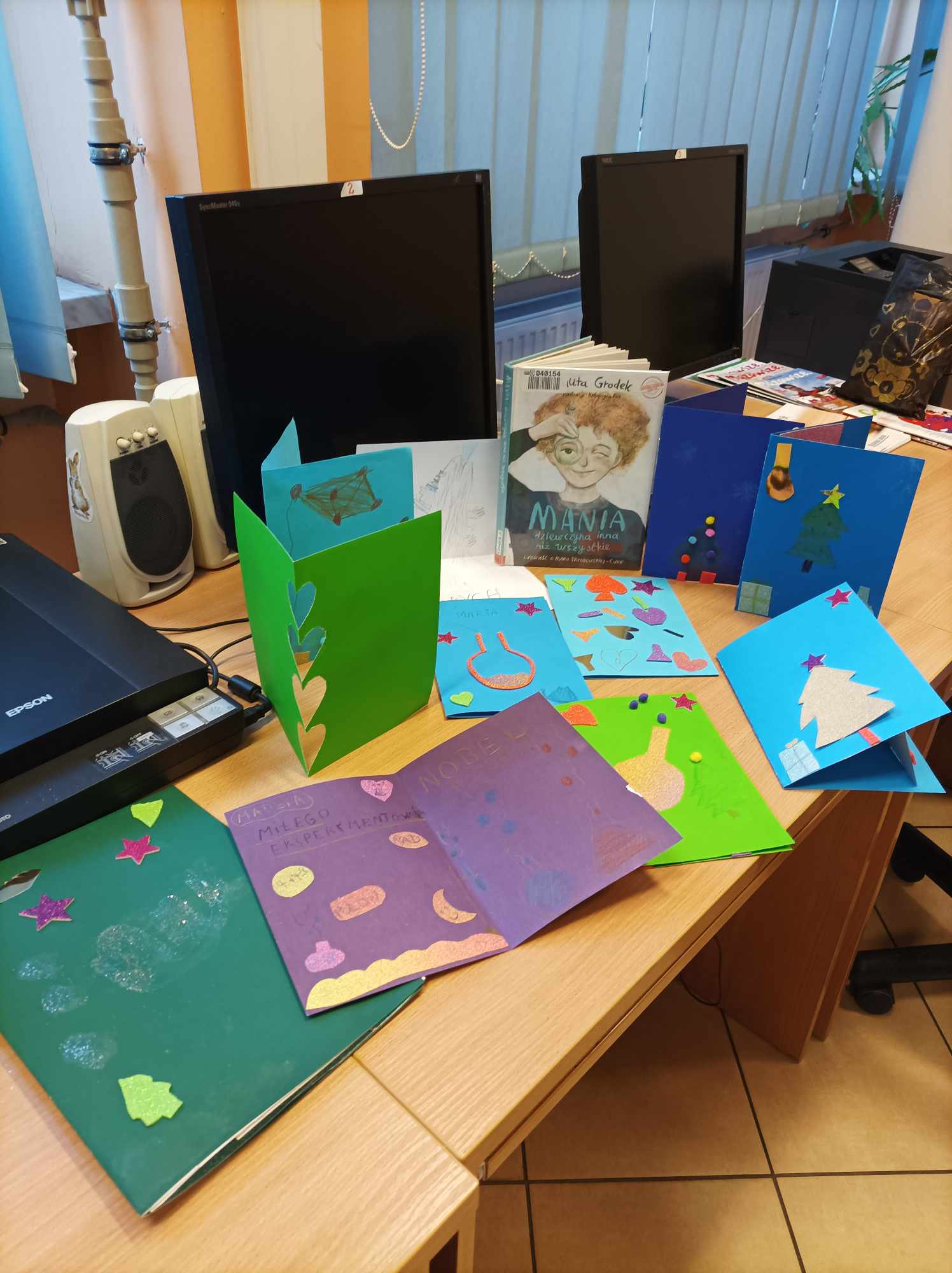 Dzięki uczniom klasy III ze SP STO przy ul. Toruńskiej 23 przybliżyliśmy sobie postać wybitnej Polki – Marii Skłodowskiej-Curie. Dzieci „spotkały” tę niezwykłą osobę w książce J. Grodek „Mania, dziewczyna inna niż wszystkie” . Pozycja ta jest lekturą w klasach młodszych szkoły podstawowej. Na naszych zajęciach trzecioklasiści zapoznali się z prezentacją multimedialną mówiącą m.in. o dzieciństwie i pracy naukowej oraz zaangażowaniu obywatelskim Marii Skłodowskiej-Curie w czasie I wojny światowej. Rozmawialiśmy również o trudach, jakie musiała przejść nasza bohaterka, żeby zostać naukowcem, a wcześniej studentką. Przeczytaliśmy krótki tekst mówiący o życiu tej wyjątkowej, niesamowitej, bardzo ambitnej i zdeterminowanej kobiety: „Maria Skłodowska-Curie” autorstwa Marii Isabel Sanchez Vegary, z serii „Mali Wielcy”. W kąciku plastycznym uczniowie wykonali kartki świąteczne dla Marii Skłodowskiej-Curie. Mogli w nich napisać, oprócz życzeń, za co dziękują wybitnej Polce.