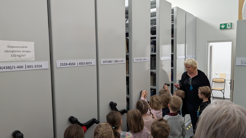 – Mamo, było megafajnie! Po Czytelni oprowadzała nas superbibliotekarka, pani Kasia. Weszliśmy tam, gdzie prawie nikt nie może wchodzić, i kręciliśmy kołami, które poruszały wieeeeeelkie regały wypełnione książkami! Potem każdy z nas mógł udźwignąć największą książkę w Czytelni – dałem radę oczywiście. Obejrzeliśmy też najmniejsze książki i.. najstarsze, 200-letnie! Kiedy już pooglądaliśmy książki, to pani Kasia zaprosiła nas do miejsca, gdzie mogliśmy je powąchać. Niesamowity, magiczny zapach!