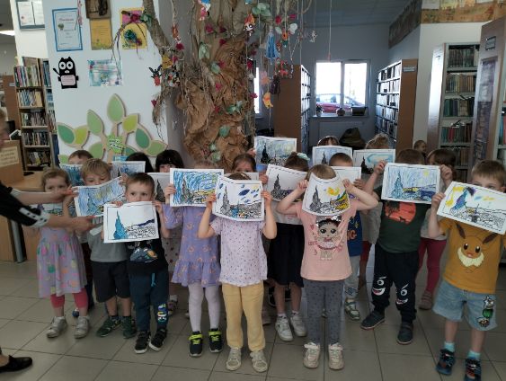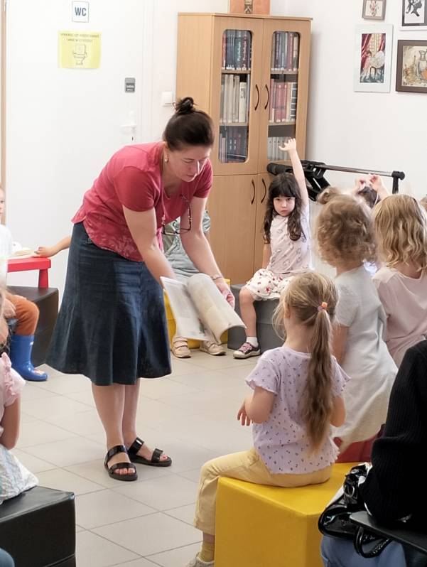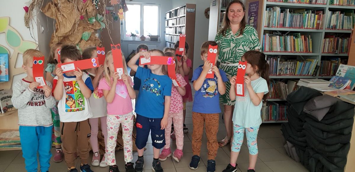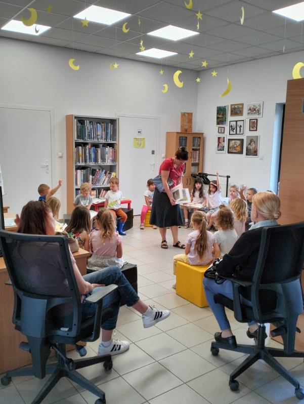 Również w czerwcu prowadziliśmy lekcje biblioteczne z serii „Biblioteka – dobre miejsce”, na których opowiadaliśmy najmłodszym czytelnikom o tym, co można robić w bibliotece, jak należy obchodzić się z książką i jak korzystać z naszych zasobów, w czym niezawodnie od lat pomaga nam żółwik Franklin, który lubi bibliotekę i czyta kolegom.