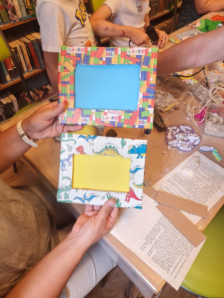 W ramach „Lata w mieście” 23 lipca w Wypożyczalni nr 37 odbyły się wakacyjne warsztaty plastyczne. Dzieci, które odwiedziły naszą placówkę tego dnia, wykonywały ramki do zdjęć.